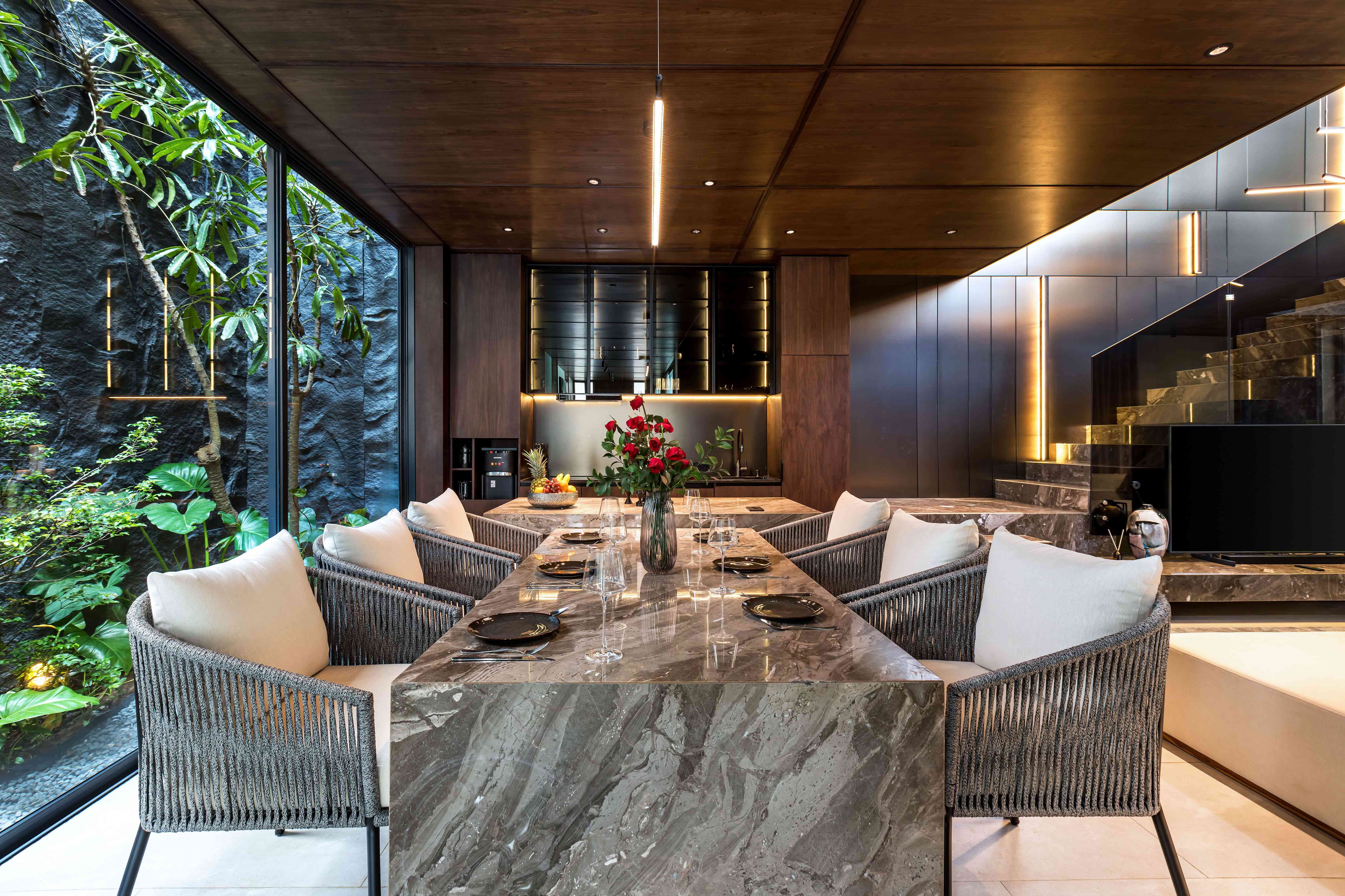 Grey Villas - современные виллы на Бали, адаптированные к тропическому климату. Проект представляет собой серию сблокированных вилл, спроектированных с учётом климата, ландшафта и культурного контекста Бали. Концепция направлена на создание устойчивой жилой среды с максимальной интеграцией в природные условия. Планировочные решения основаны на принципах перекрёстной вентиляции, естественного освещения и приватности. Виллы организованы вокруг внутренних двориков с бассейнами и зелёными зонами, что формирует локальный микроклимат и снижает нагрузку на инженерные системы. Каждая вилла предлагается в двух вариантах - с двумя или тремя спальнями. Открытые планировки, раздвижные стеклянные панели и плавные переходы между внутренними и внешними пространствами обеспечивают прямую связь с садом. Интерьеры выполнены в нейтральной натуральной палитре с использованием дерева, камня и текстиля, а минималистичная эстетика дополнена тропическими мотивами, создавая современное и устойчивое пространство.