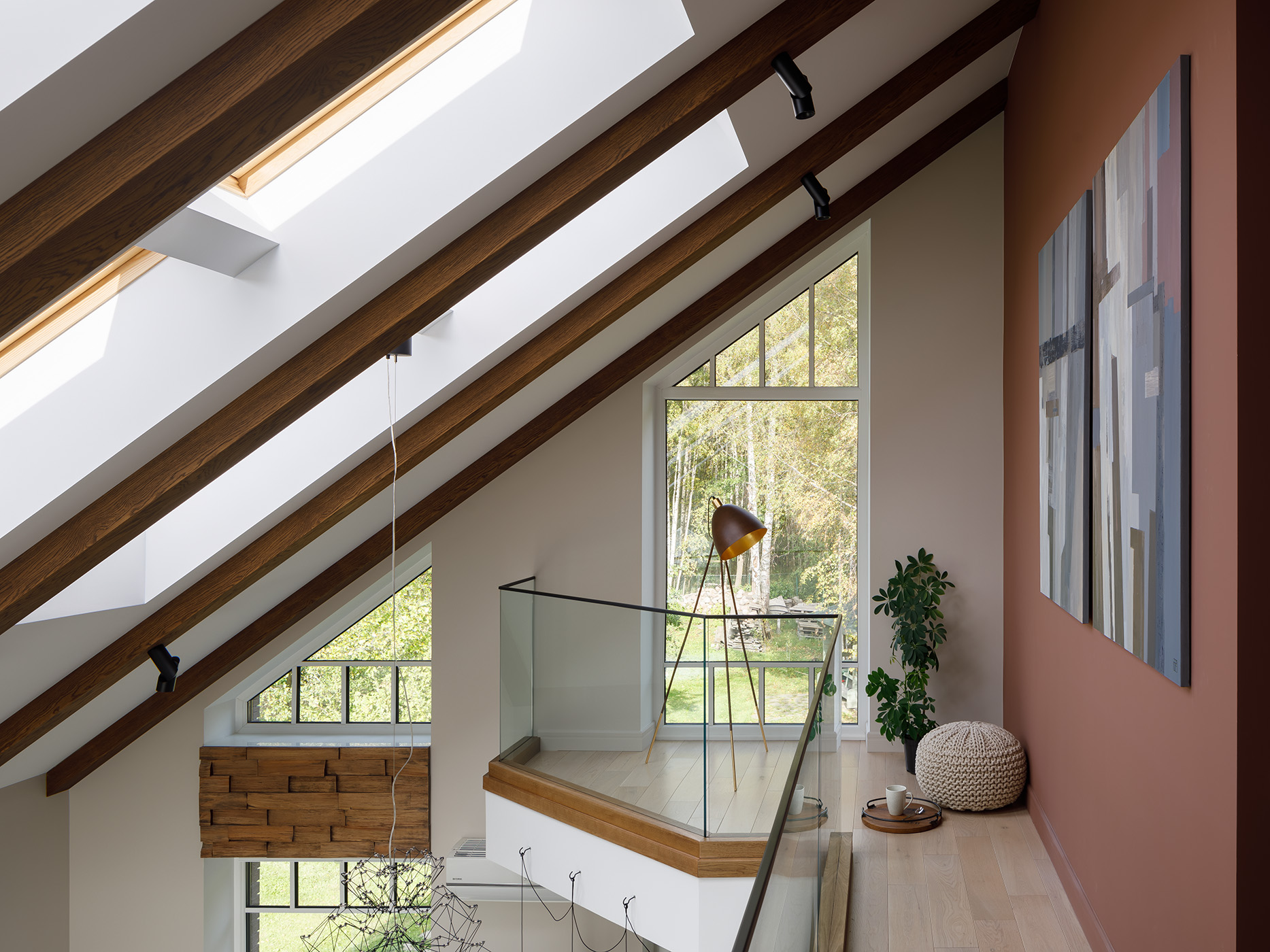 – цвет Марсала выделяет центральный объем и на 1 и на 2 этаже, позволяя ощутить целостность пространства всего коттеджа. Различные по назначению и настроению помещения уравновешивают друг друга. Уютный и жизнерадостный интерьер кухни-столовой прекрасно подходит для семейных обедов, а лаконичное пространство 2 этажа располагает к уединению и спокойному отдыху.