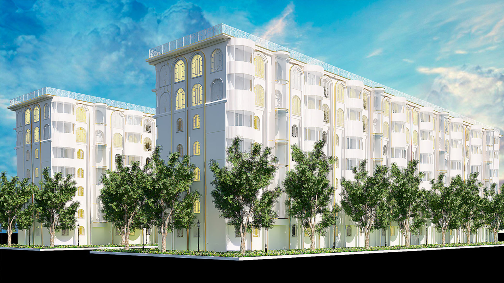 Описание проекта, предоставленное заявителем: Проект дизайна многоквартирного дома разработан с учетом влияния цветовой гаммы и форм на психику. В природе распространены плавные формы - использование в дизайне подобных форм способствует расслаблению, спокойствию.