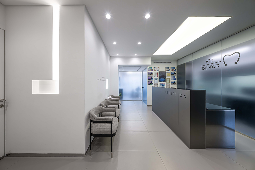 Главной целью заказчика было формирование высокотехнологичного и футуристического фирменного стиля стоматологической практики — такого, который транслирует подход к лечению на основе анализа клинических данных, строения костей, жевательных паттернов и детальной диагностики челюсти и шеи. Поэтому дизайн должен был выражать научный, специализированный и основанный на данных характер. Несмотря на то что существующая клиника имела функциональную медицинскую инфраструктуру, она сталкивалась с проблемами: недостатком естественного света, несогласованностью в выборе материалов, негармоничными цветовыми решениями и неясной пространственной логикой.