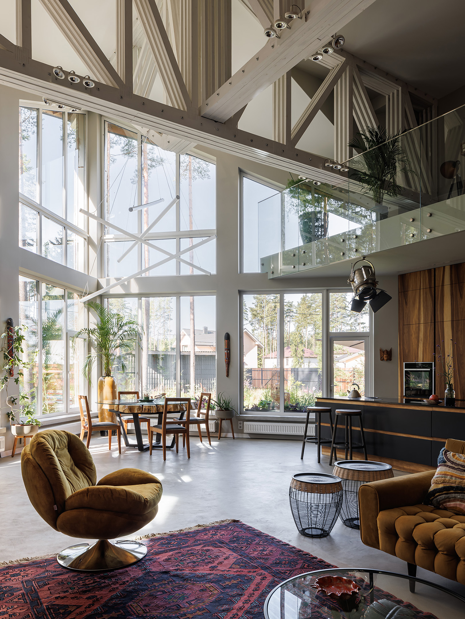 Благодаря треугольному атриуму в кухне гостиной завтрак происходит на рассвете, а ужин