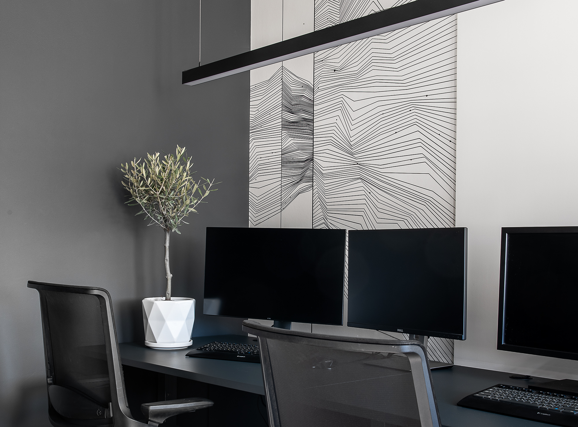 Оригинальный декор и использование объектов искусства стали неотъемлемой частью современного офиса. Пространство творческой мастерской насыщено культовыми предметами дизайна. Но особой гордостью дизайнеров являются живописные работы.