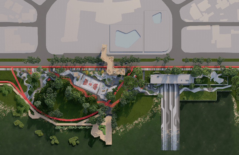 О проекте: Учитывая нехватку общественных пространств в этой части города, автор предлагает устройство рекреационной зоны на набережной по восточной границе водохранилища Гуарапиранга. Проектом предусмотрены зоны для прогулок и спокойного отдыха, а также спортивные и игровые площадки, а пешеходная дорожка так и манит спуститься к воде.