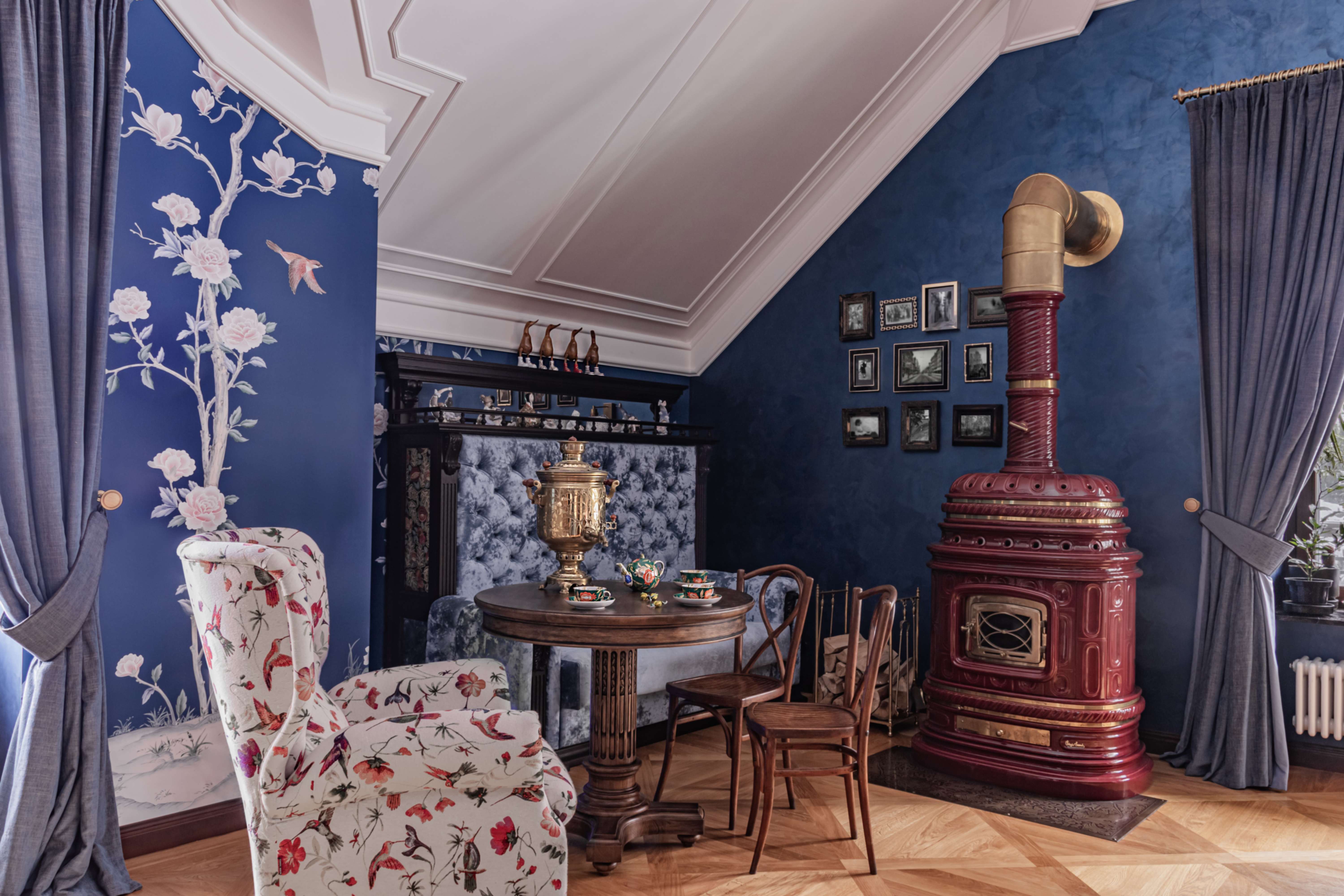 Самой яркой особенностью интерьера дома стала изящная керамическая печь Corsara L/A итальянского бренда Sergio Leoni, выполненная из изразцов. Печь изготовлена в традиционном стиле и имеет латунный декор. Corsara была вдохновлена роскошными украшениями галеонов эпохи Возрождения, напоминающие батареи пушек по бокам корабля.