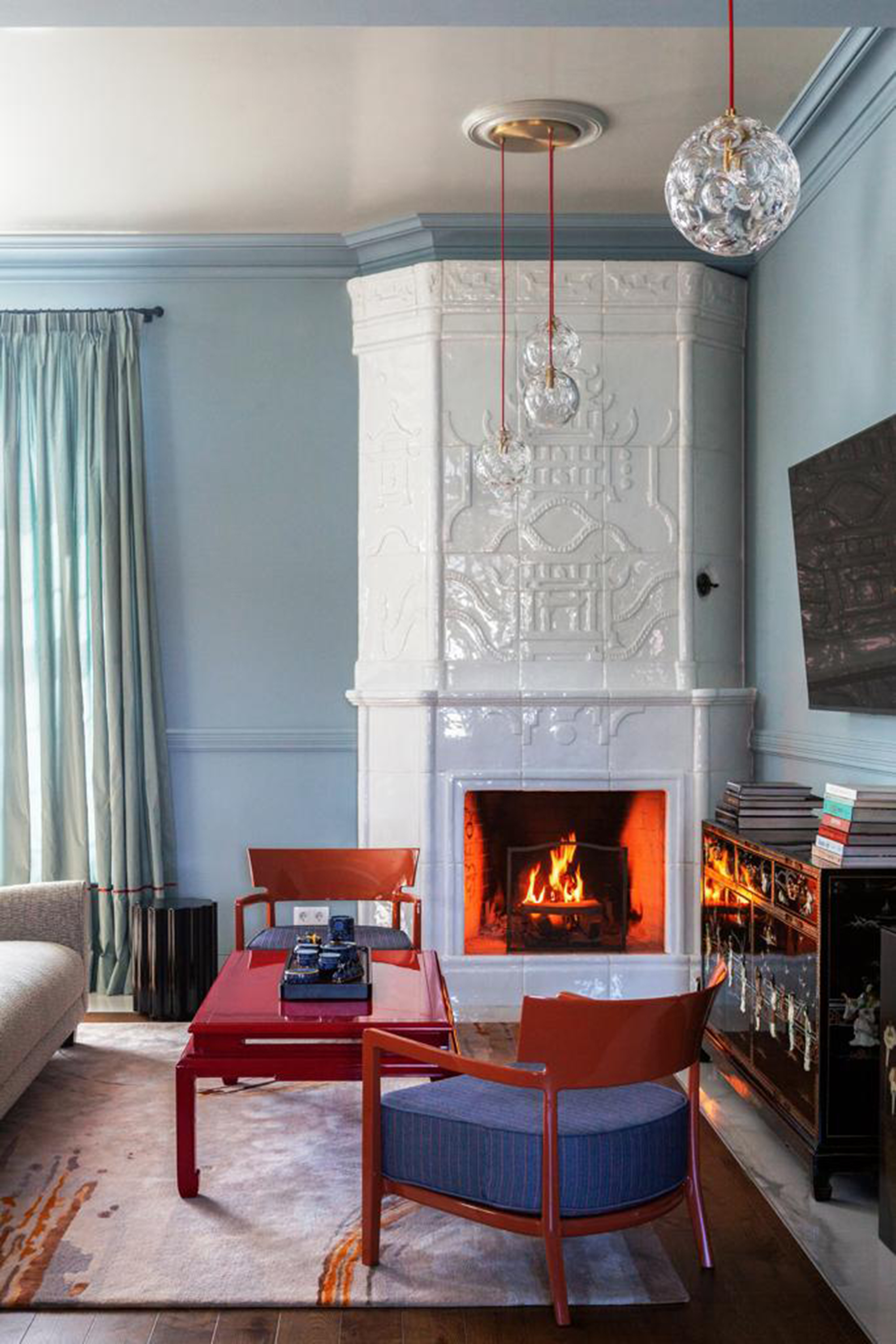 Автор проекта учел пожелания заказчика по облицовке камина одной из комнат загородного дома. Для отделки короба камина использованы керамические изделия (изразцы) с применением ручной формовки из высокотемпературного шамота, покрытые белой глазурью. Монтаж изразцов осуществляется с помощью термостойкого плиточного клея на поверхность камина.