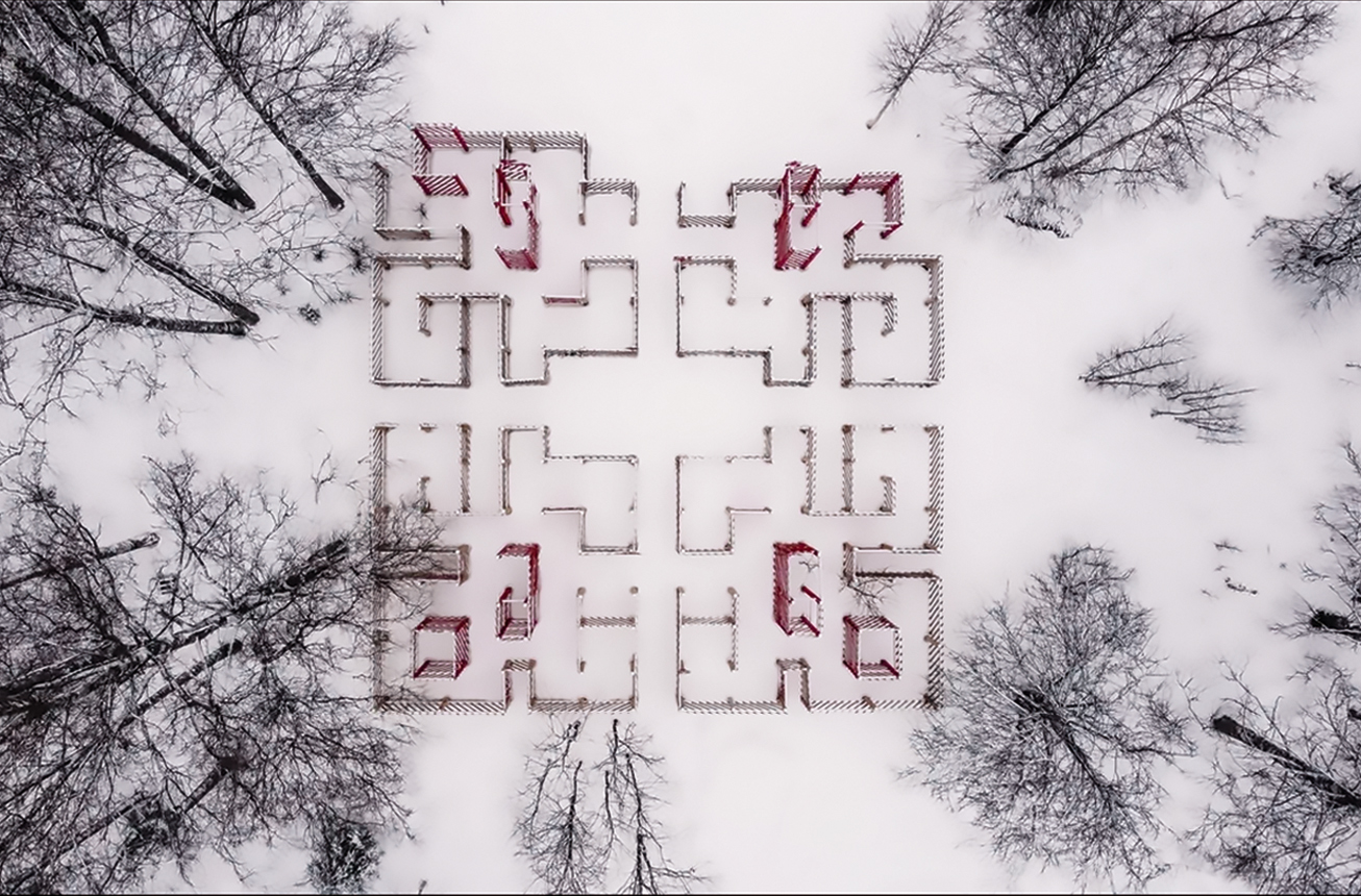 Иван Зверьков и Софья Кухтова (арт-группа Nonfrozenarch) в сотрудничестве с этно-музеем «Карельский дом в Чашково» создали функциональную инсталляцию лабиринт-квест "Карельский путь/ KarielanTie".