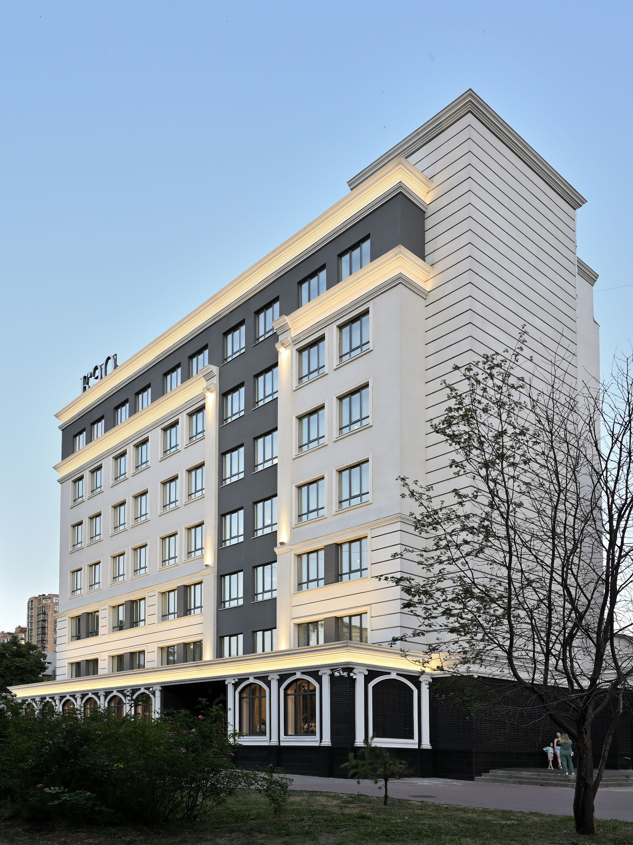 Идея лицея - классическое образование, и экстерьер и интерьер должны соответствовать духу этого места. Архитекторы создали фасад с классическими элементами карнизов, выделив входную группу, и применили активные рустованные плоскости.