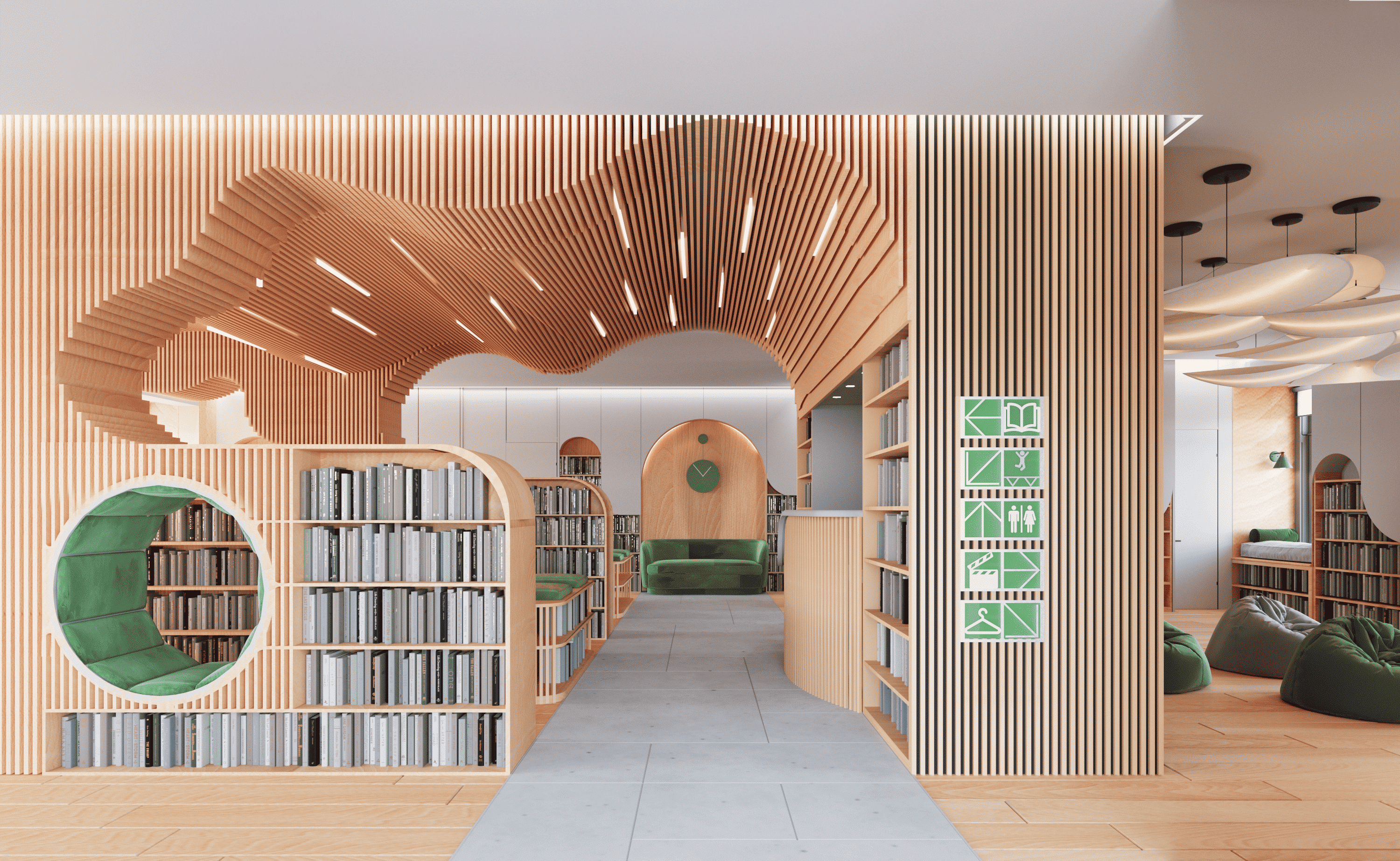 Описание проекта, предоставленное заявителем: Проект дизайна детской библиотеки в Кировске основан на принципах детской эргономики, безопасности и экологичности. В его рамках были разработаны планировочное решение, интерьерный дизайн, входная группа, система сортировки книг и брендбук библиотеки.