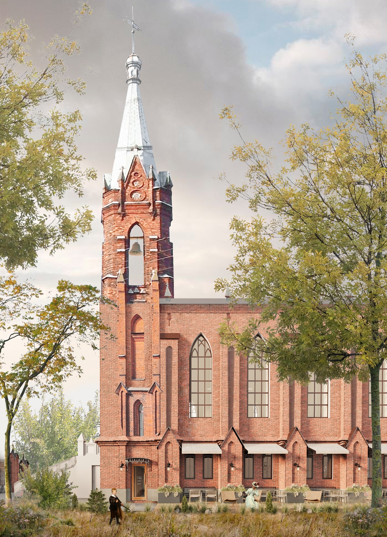 Новая функция подразумевает размещение таких помещений как коворкинг для студентов, кабинеты для студенческих клубов, библиотека, кафе и зал для мероприятий. Интерьеры вторят готической архитектуре храма. Каждая деталь, от тяжелого основания до воздушного завершения, словно тянется к небу, превращая архитектуру в застывшую молитву.