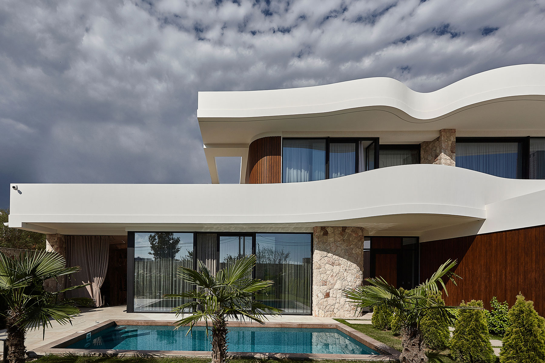 Описание проекта, предоставленное заявителем: Небольшая вилла для постоянного проживания, интегрированная в городскую застройку. С участка открывается вид на город и море. Плавные формы и натуральные материалы создают ощущение уюта и лёгкости. Уютная терраса отделена от дома стеклянной перегородкой, обеспечивая приватность от соседних участков. Небольшой бассейн и вечнозелёные деревья завершают композицию.