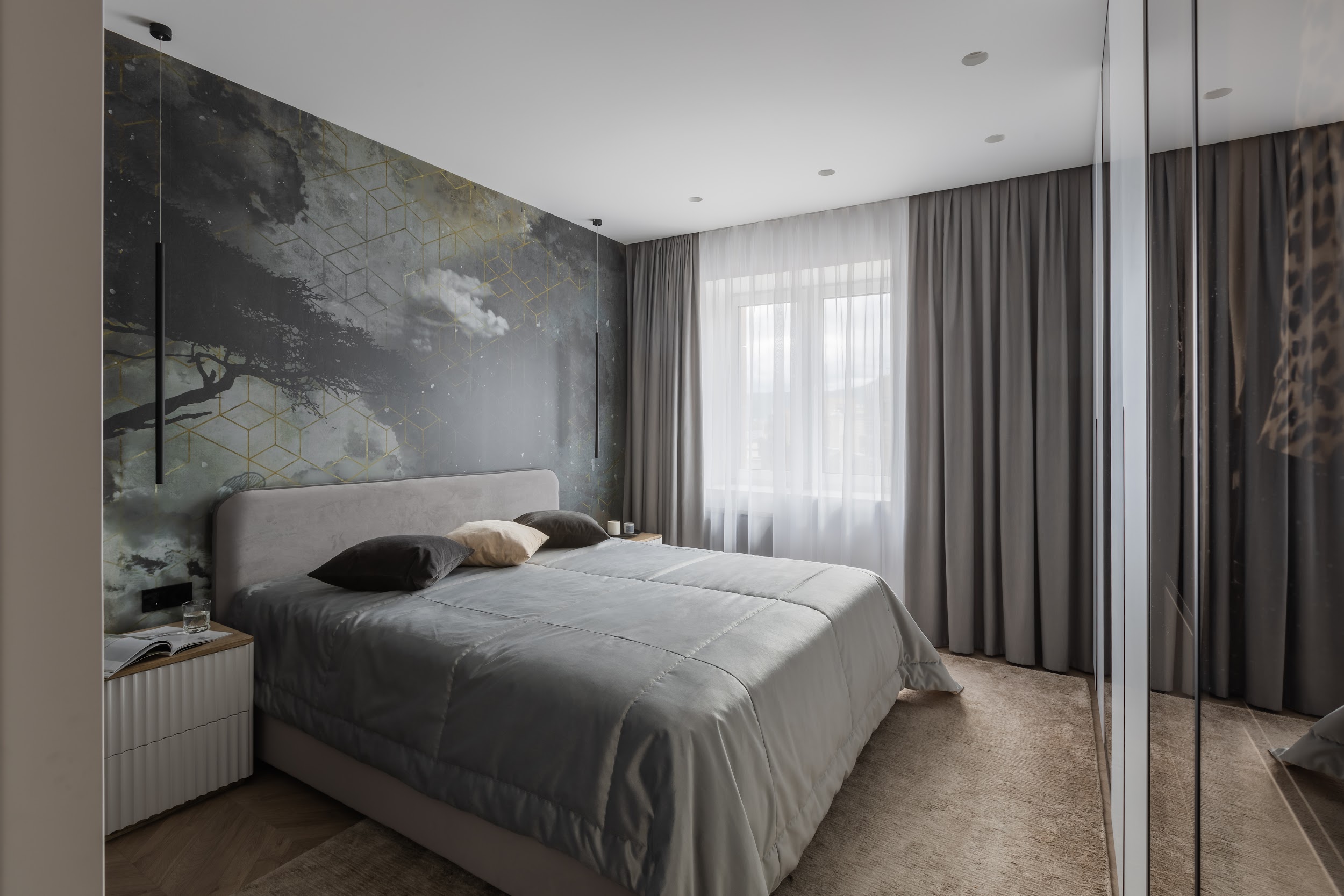 В квартире 2 спальни с разным настроением и задачами – каждая поддерживает в своем декоративном решении общий настрой квартиры – минимум деталей в сочетании с безупречным стилем и уютом.