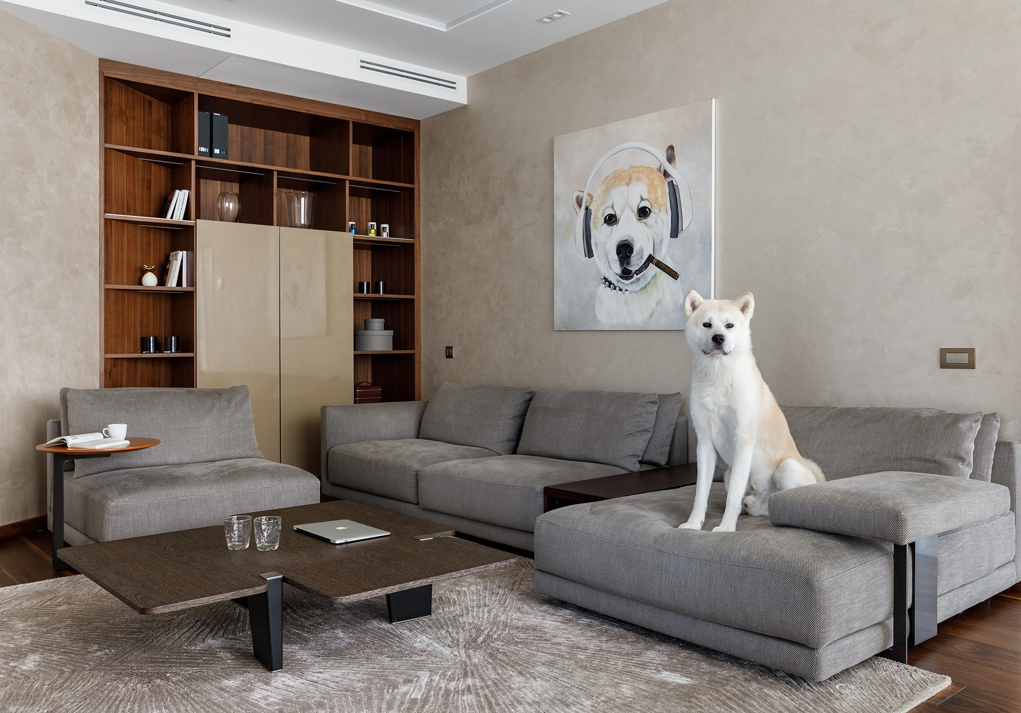 Владелец поставил интересную задачу: создать современное, по-европейски стильное пространство. Среди обязательных пожеланий - отдельно стоящая ванна, кинозал, большая гардеробная, использование натуральных материалов. Они, как и сложная конфигурация квартиры, во многом обусловили дизайн-концепцию.