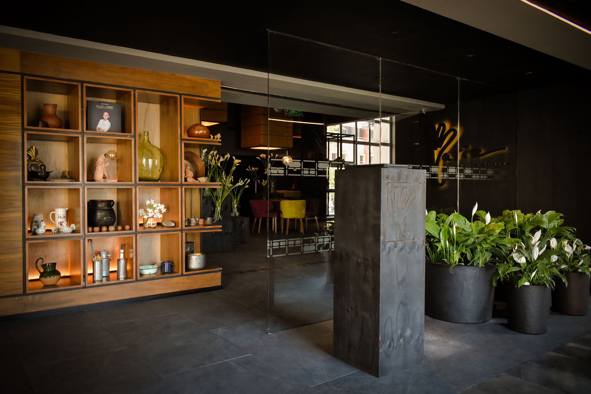 О проекте: Шеф-повар ресторана «Мария Райс и Терра» Колибри Хименес исследует богатые гастрономические традиции Мексики, преподнося их своим гостям в аутентичном звучании. Уникальная национальная культура и местный колорит отражены и в интерьерах заведения, оформление которых доверили дизайнерам студии Kauslab. В основе предложенной ими концепции внутреннего декора помещений лежит тема природы. Живые растения должны напоминать о лесных чащах и болотах с богатой флорой и фауной – месте зарождения жизни. Одну из стен украшает композиция из пяти круглых панно: желтое символизирует солнце, синее – луну, а три панно между ними – душу.