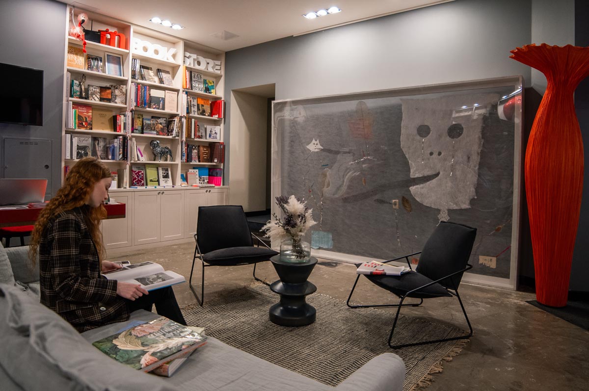 Для нас очень важно, что у наших слушателей есть возможность "учиться" с искусством, и мы, как эксперты, формируем свою коллекцию, с которой мы также работаем в книжном магазине, где художники создают для нас лимитированные постеры и проводят свои выставки.