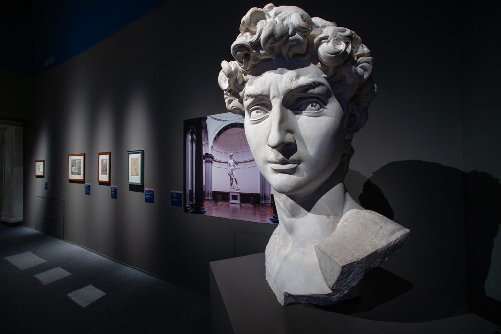 Увлекательная жизнь художника, создавшего ряд всемирно известных шедевров, стала темой выставки, прошедшей во Дворце дожей (Италия, Генуя) с 21.10.2020 по 11.07.2021. Ее посетители, в частности, могли узнать, какие выдающиеся личности той эпохи окружали Микеланджело. Среди них, например, был Джорджио Вазари, биограф нескольких художников и создатель прижизненного мифа о Микеланджело как о творце с даром, ниспосланным небесами.