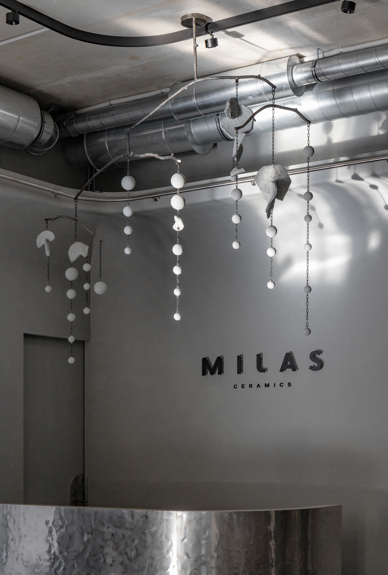 В основе концепции проекта лежат мягкие, плавные формы, живые линии, натуральные материалы, позволяющие на визуальном языке передать ощущения от древнейшего гончарного ремесла и работы с глиной. Задачи пространства – наполнять людей вдохновением и творческой энергией, позволить замедлить течение времени и наслаждаться созданием красоты. В отделке применены декоративная штукатурка, натуральное дерево с живыми необработанными краями, шлифованная нержавейка. Сохранена эстетика необработанного бетона, оставлены открытыми все коммуникации потолка, штукатурка выбрана с выраженной фактурой – все для усиления впечатления от работы с природным материалом. Все детали выполнялись на заказ и разрабатывались нашим бюро: дверные ручки в виде ветвей, арт-объект в зоне ресепшен, декоративный подвес в кабинете руководителя.