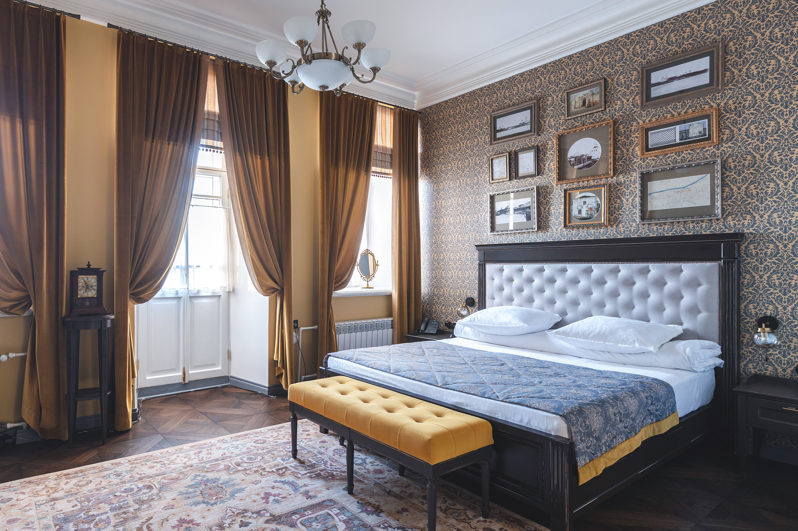 В проекте гостиницы предусмотрено 12 номеров, каждый из которых посвящён реальной исторической личности Енисейска. Было важно создать ощущение нахождения в гостях: словно турист совершил путешествие во времени и приехал пожить в настоящий купеческий дом, в семью енисейских золотопромышленников.