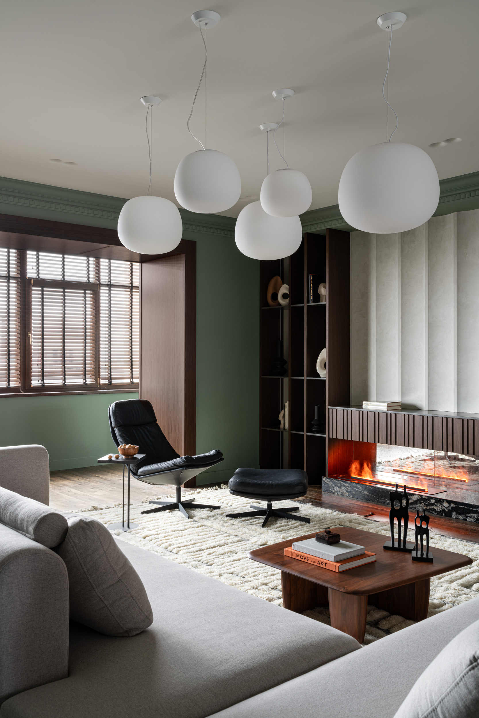 Интерьер соткан из благородных природных фактур и оттенков. Дерево, натуральный камень, ковры из шерсти и шелка ручной работы, искусство, деликатная гипсовая лепнина, льняные и хлопковые ткани позволяют пространству раскрываться постепенно, подчеркивая его многослойность.