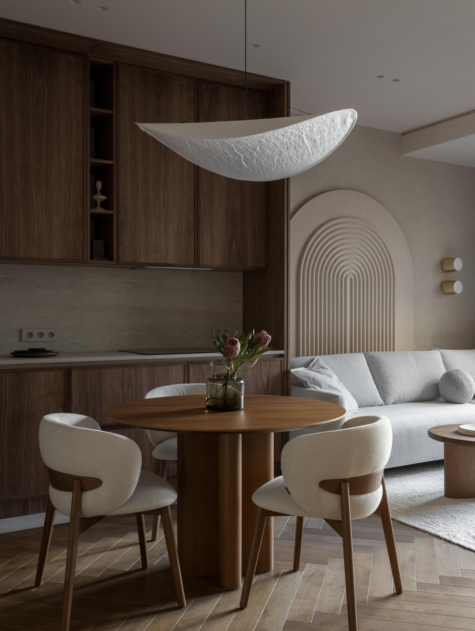 Квартира 80 кв.м в ЖК «Настоящее» для семейной пары с ребенком. Главной задачей было создать современный интерьер в теплых тонах, успокаивающий и наполняющий. Плавные формы и живописные фактуры в приглушенных бежевых тонах умиротворяют и расслабляют. Внимание к деталям позволяет объединить основные композиционные акценты в единый гармоничный интерьер.