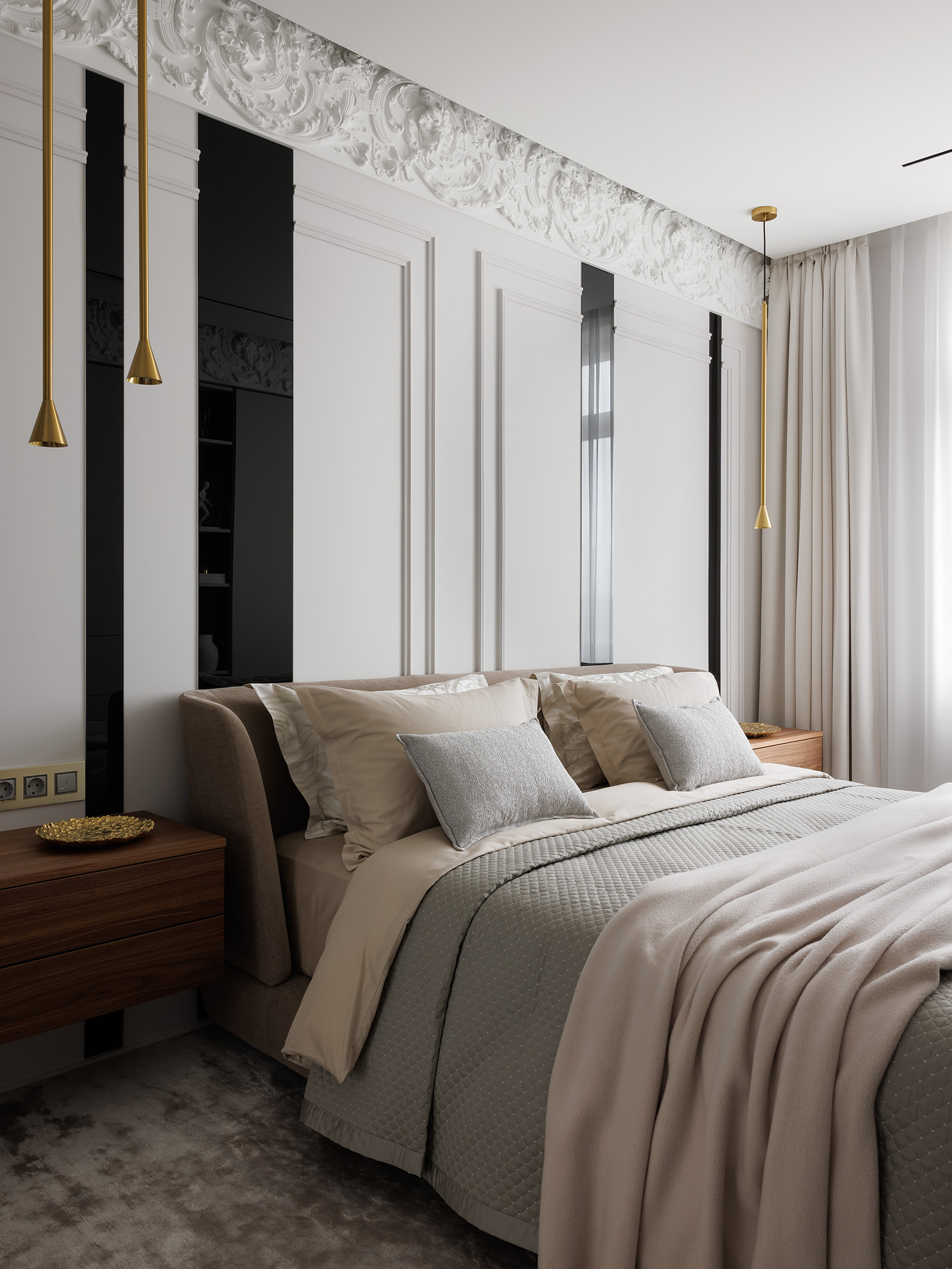 Описание проекта, предоставленное заявителем: Это интерьер, где классические решения сочетаются с современной функциональной мебелью. Заказчики — московская семья с дочкой — выбрали петербургский ЖК, и квартира должна была олицетворять культурный код Северной столицы. С этим помогли элементы классики в дизайне и близость к Неве.