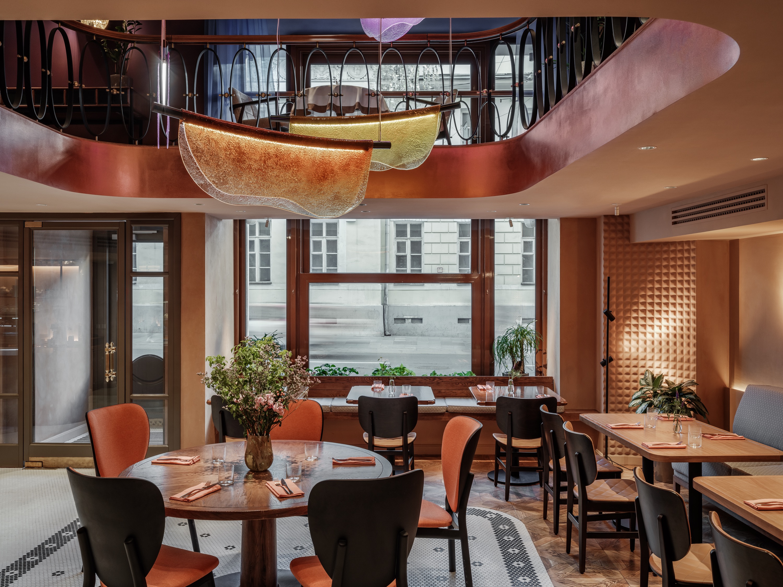 Сложность: требовалось создать абсолютно новый интерьер, который соответствовал бы актуальным задачам ресторана, но при этом сохранить и вписать уже имеющиеся элементы. Придумать свежее решение для фасада в условиях жестких требований к архитектурному облику Москвы.