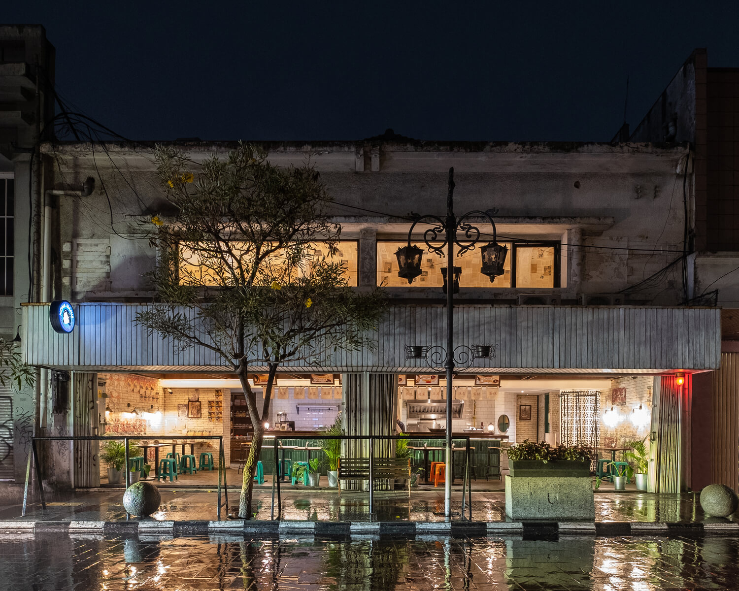 О проекте: Одно из исторических зданий города изначально проектировалось как нелегальный бар: здесь собирались противники сухого закона. В отличие от многих других местных зданий это сохранило свой фасад неизменным: в передней части помещения располагалось уличное кафе, где подавали димсамы, а проход из него в бар вел через шкаф с припасами.