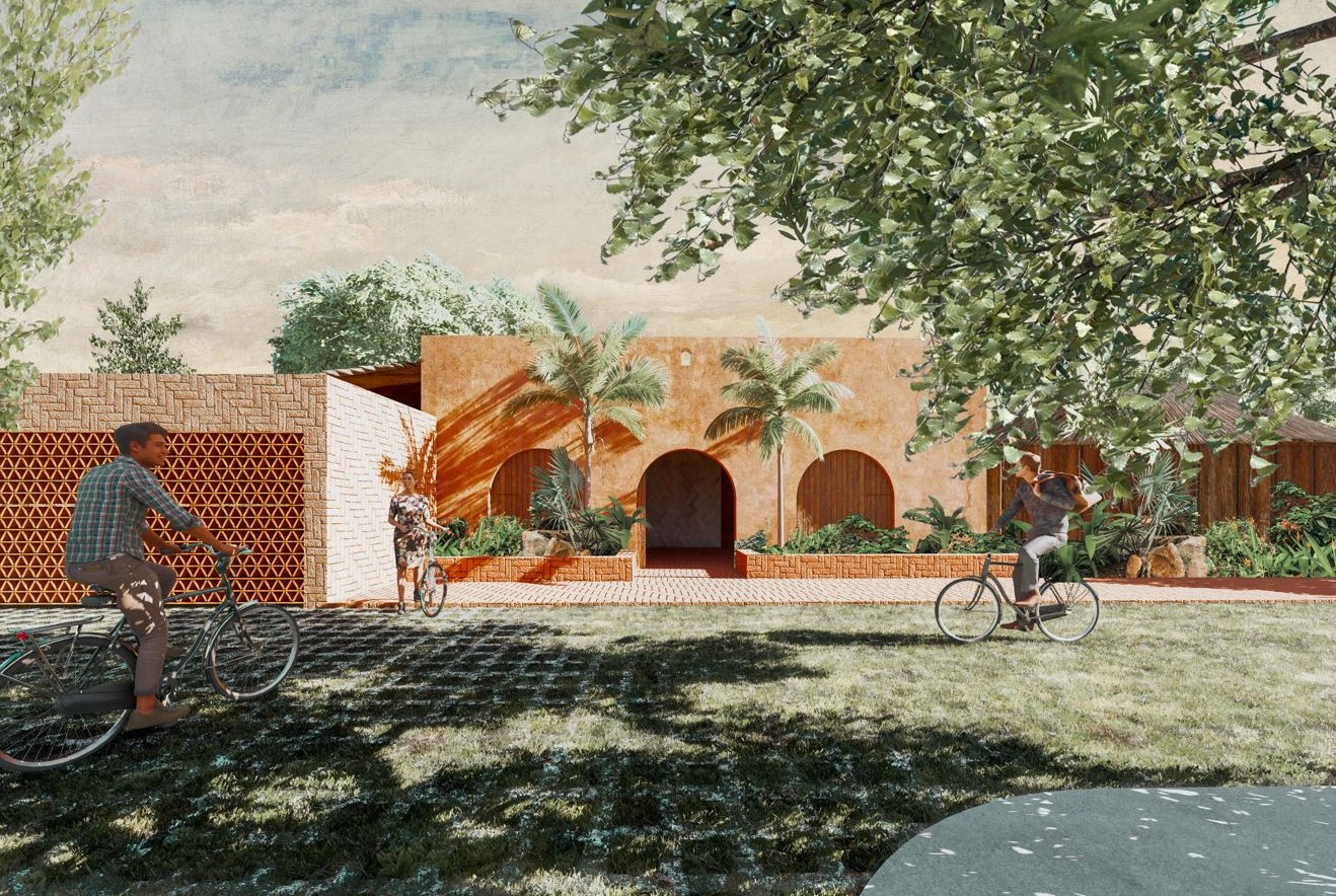 О проекте: В качестве основного строительного материала предлагается использовать местный грунт, который придаст глиняному кирпичу красный оттенок, а также колорированный бетон. Выбор материалов как бы напоминает, что человек является порождением земли, и потому должен жить с ней в мире.