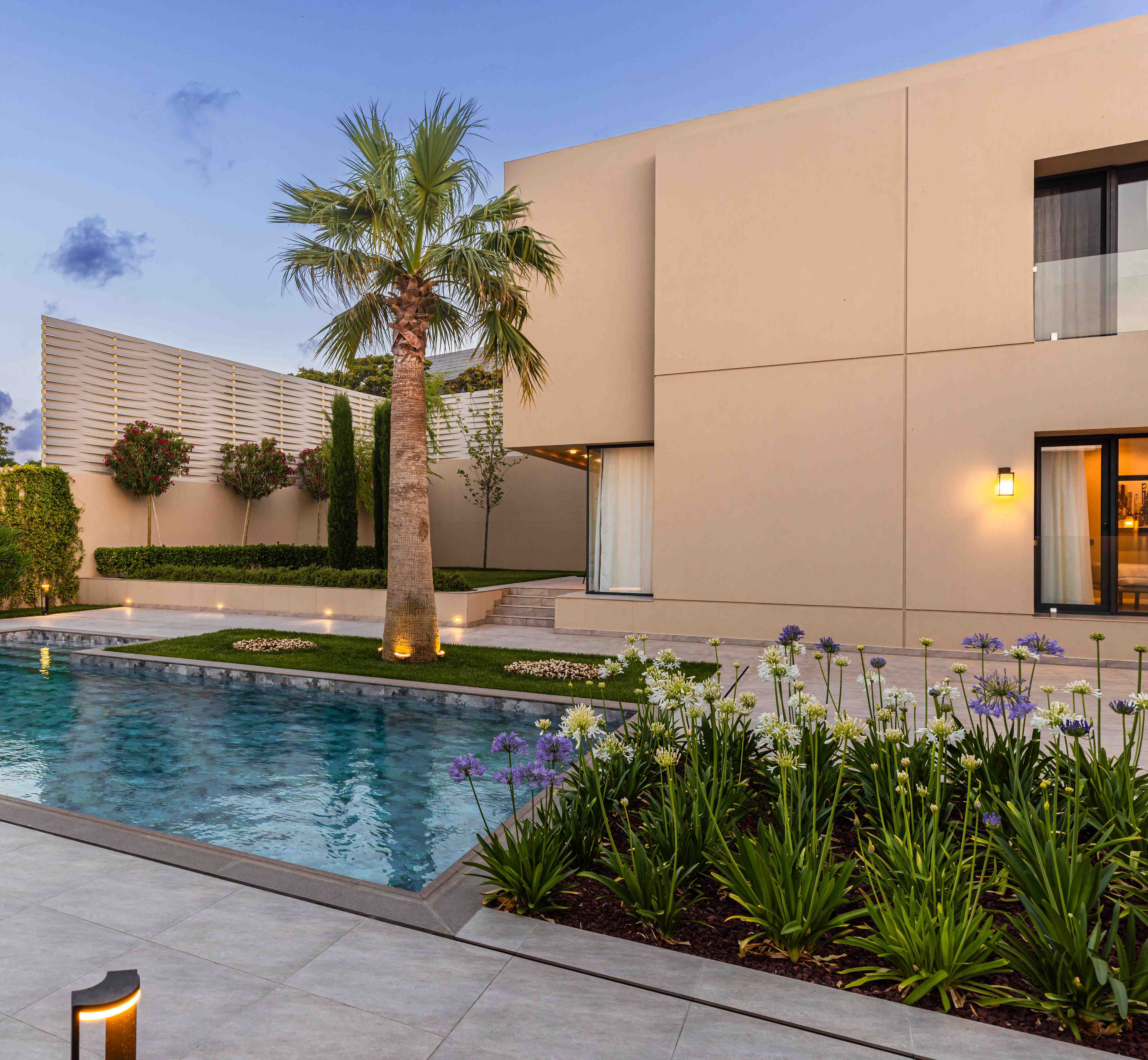 Каждый из 17 двухэтажных домов включает общую зону для жизни и отдельную приватную зону для сна. Все спальни оснащены ванными комнатами и гардеробными. Генплан обеспечивает комфорт, естественное освещение и грамотную ориентацию домов. Дворы ограждены, но остаются открытыми, при этом ни один дом не выходит фасадом на другой. Этот проект является редким примером реализации архитектурной концепции без компромиссов. Он отражает единство замысла заказчика и архитекторов — сотрудничество, результатом которого стало комфортное, эмоционально выразительное и архитектурно цельное жилое сообщество.