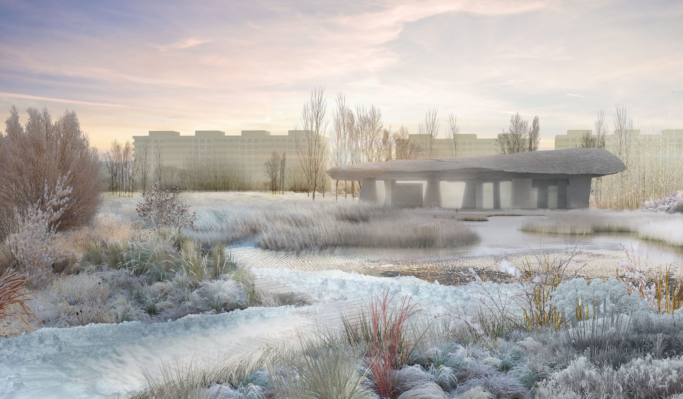 В культуре саамов распространены орнаменты, небольшие яркие акценты украшали их национальную одежду. Орнаментика легла в основу пространственной стратегии парка: внутри большого массива растений всегда можно встретить небольшую полянку или закуток, соразмерный человеку. Полянки являются не только местом отдыха, но и площадкой для размещения артефактов.