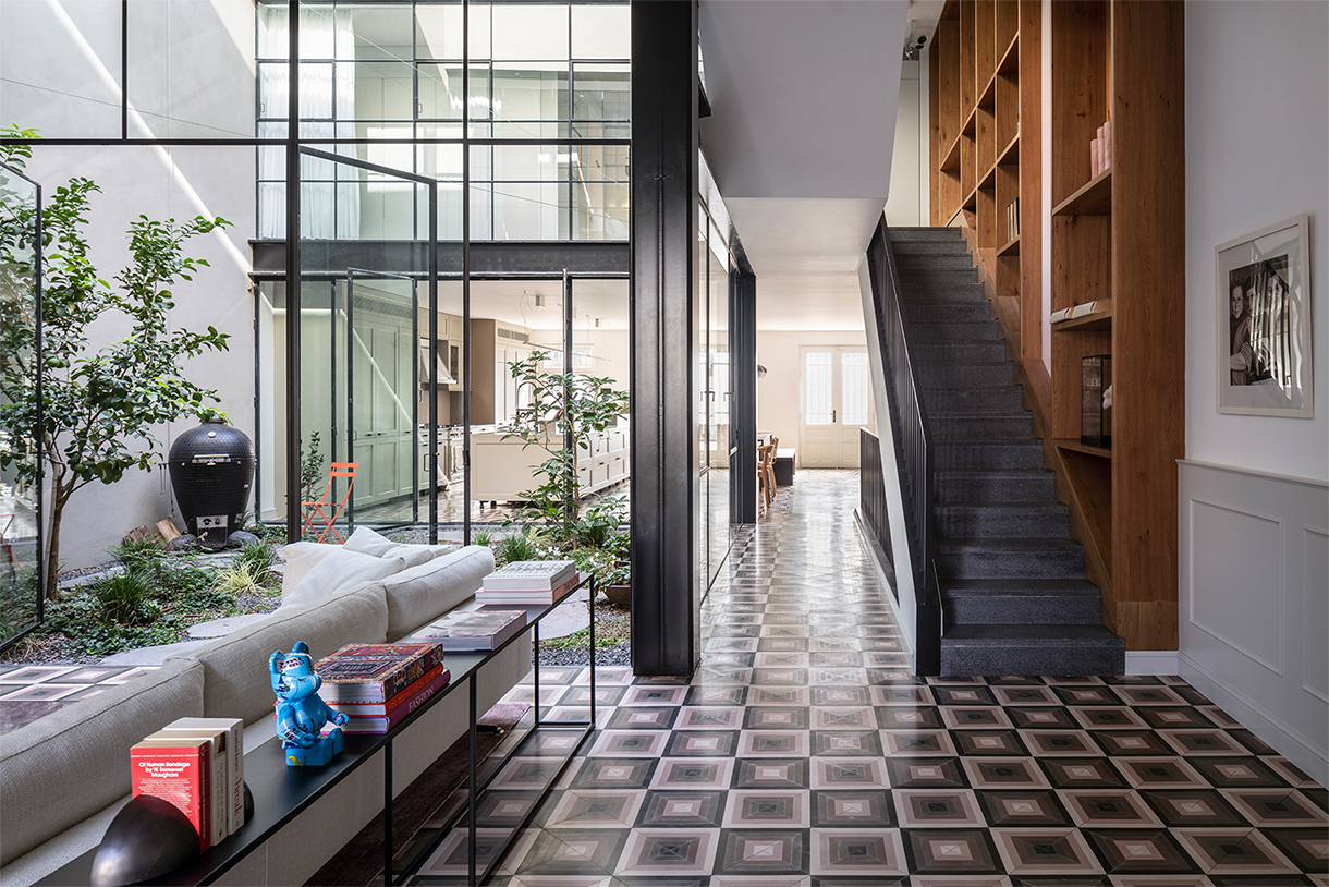 О проекте: Городской дом с патио расположен на тихой узкой улочке старого Неве-Цедек. Историческое здание, построенное в 1920-е, признано охраняемым архитектурным наследием Тель-Авива, поэтому конструктивные изменения не затрагивают уличные фасады. По заднему фасаду здание в процессе реконструкции расширено до границ участка. На стыке старой и новой частей здания спроектировано патио, которое дало имя проекту – источник света и композиционный центр интерьера, «сердце» дома. На первом этаже вокруг патио расположено объединенное пространство кухни и столовой, а окна всех помещений верхних этажей обращены к нему.