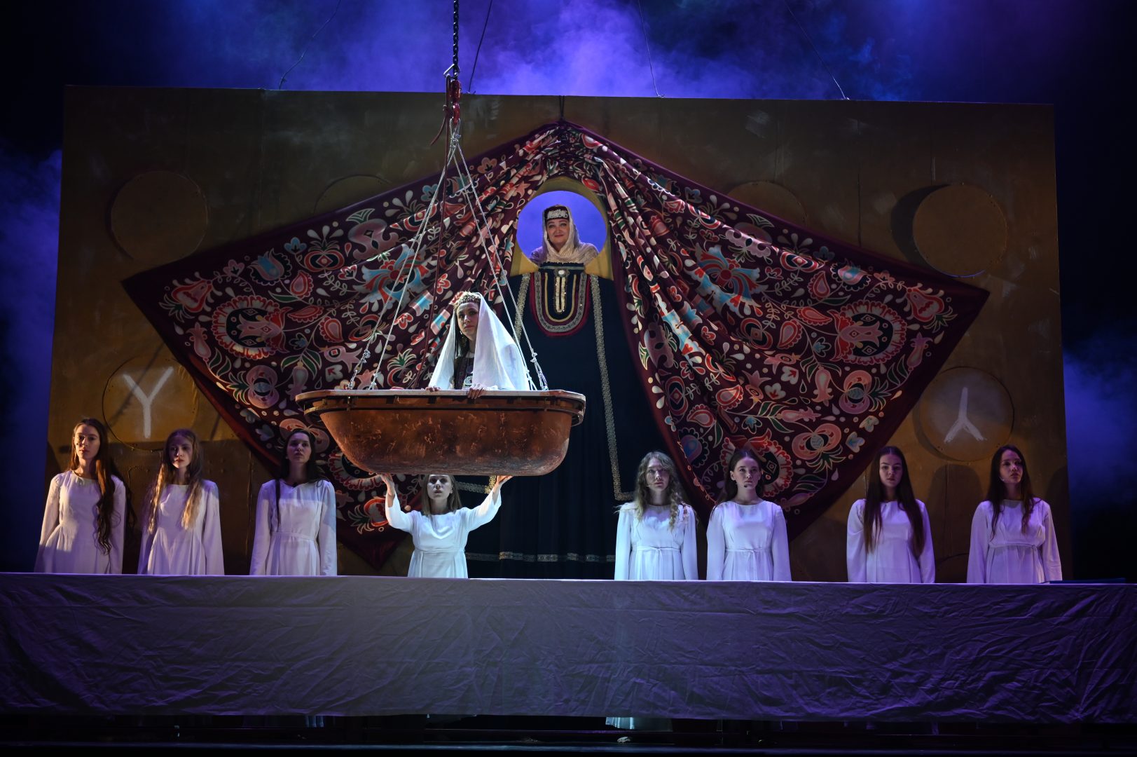 О проекте: Трехактная опера «Ал яулык, зәңгәр шәл» («Розовый платок, голубая шаль») – результат работы оперной лаборатории «Умай» Тинчуринского театра. Это первая феминистская лаборатория в истории татарского театра. Результатом лаборатории «Умай» стали три короткие камерные оперы на татарском языке. Оперы посвящены вкладу татарской женщины в татарское образование и в исторические преобразования. Сюжет первой оперы взят из мифологии татарского народа, второй – из жизни и быта татар начала прошлого века – так называемого ренессанса или эпохи джадидизма, в третьей опере можно узнать современных подвижниц татарского народа. Все авторы оперы – поэтессы, драматурги и композиторы – женщины. Во всех трех актах оперы использована одна и та же конструкция. В 2022 году спектакль «Ал яулык, зәңгәр шәл» вошел в лонг-лист Российской театральной премии «Золотая маска» и был отмечен экспертами как «самый заметный спектакль сезона 2021-2022 года.