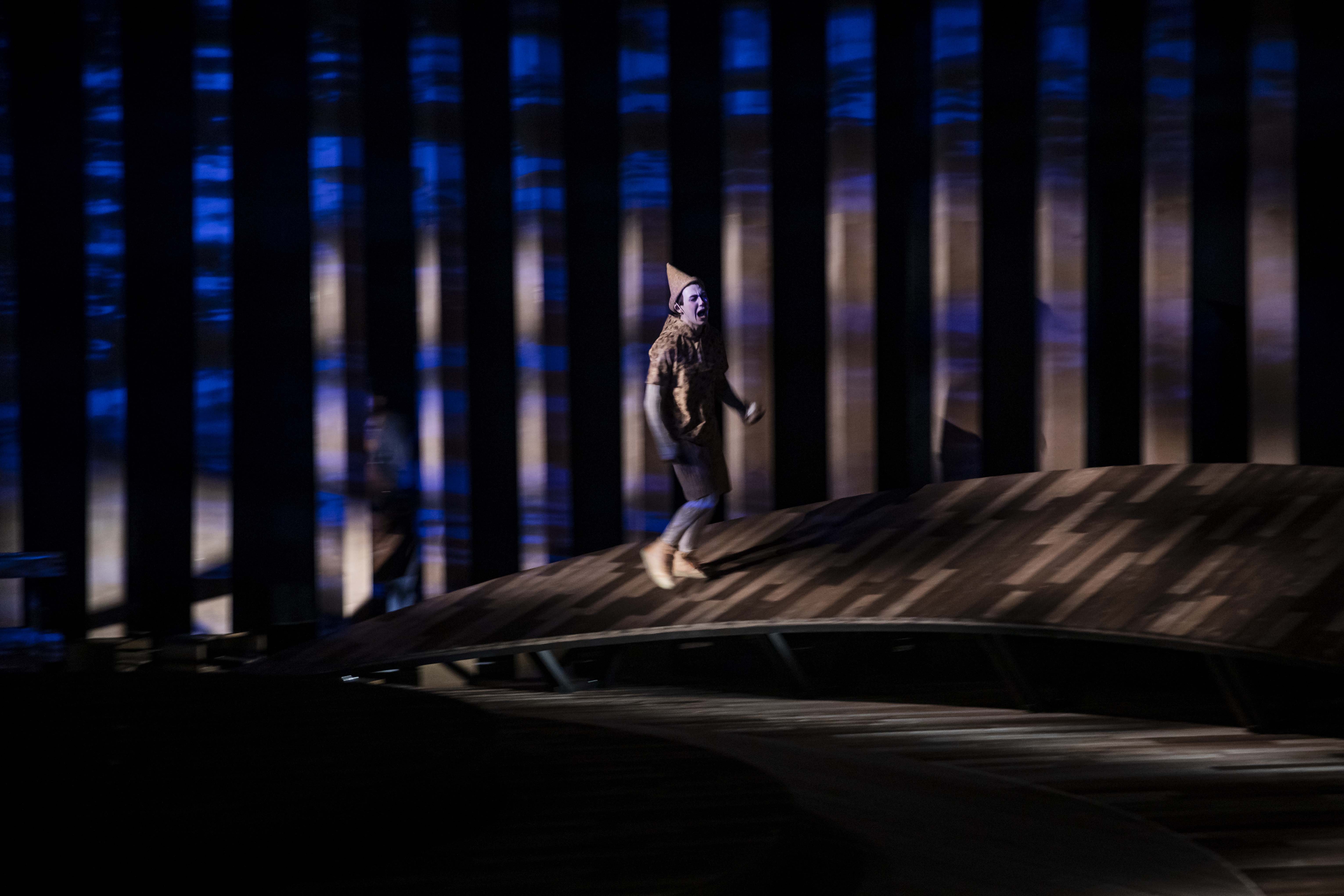 Декорации выполнены из дерева, и зрители чувствуют его запах во время представления. Выбор материала неслучаен – так автор привлекает внимание зрителя к работе столяра Джеппетто, под руками которого полено превращается в говорящего человечка. Для создания костюмов использовался пробковый материал. Вращающая сцена разделена на 3 сектора, а небольшие подвижные опоры в задней ее части отлично подходят для создания волшебных иллюзий.