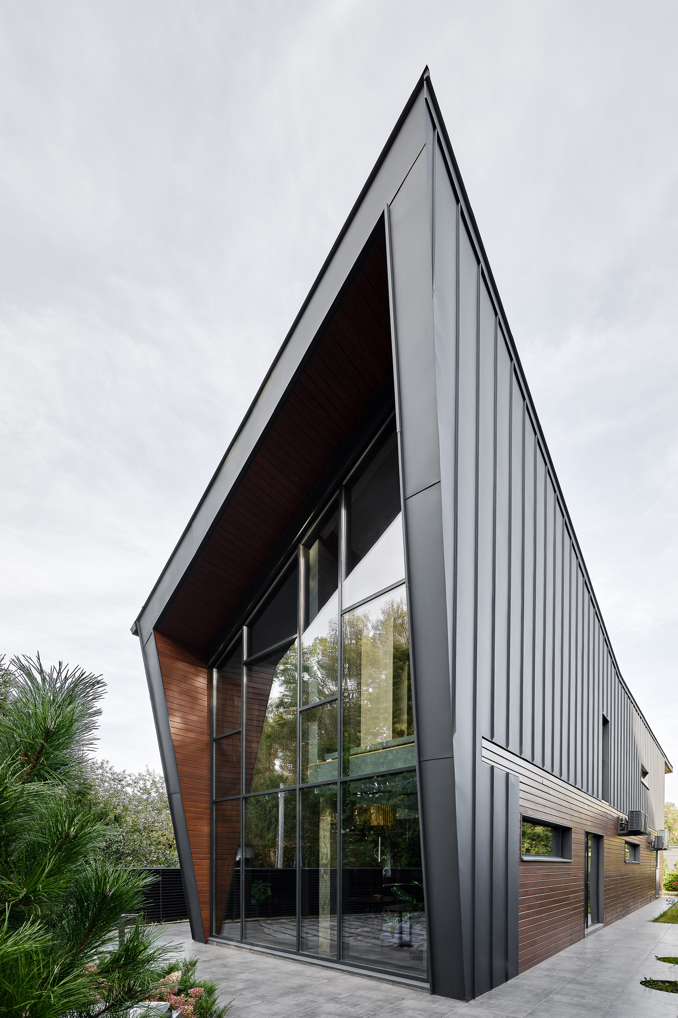Отдохнуть можно в собственной зоне спа: бассейн, сауна и джакузи расположены у большого панорамного окна с видом на сад, что наполняет пространство светом и создаёт атмосферу настоящего курорта дома. Большие окна и гармония природных материалов создают ощущение открытости, уюта и свежести, а вытянутая форма фасада делает проект узнаваемым и современным.