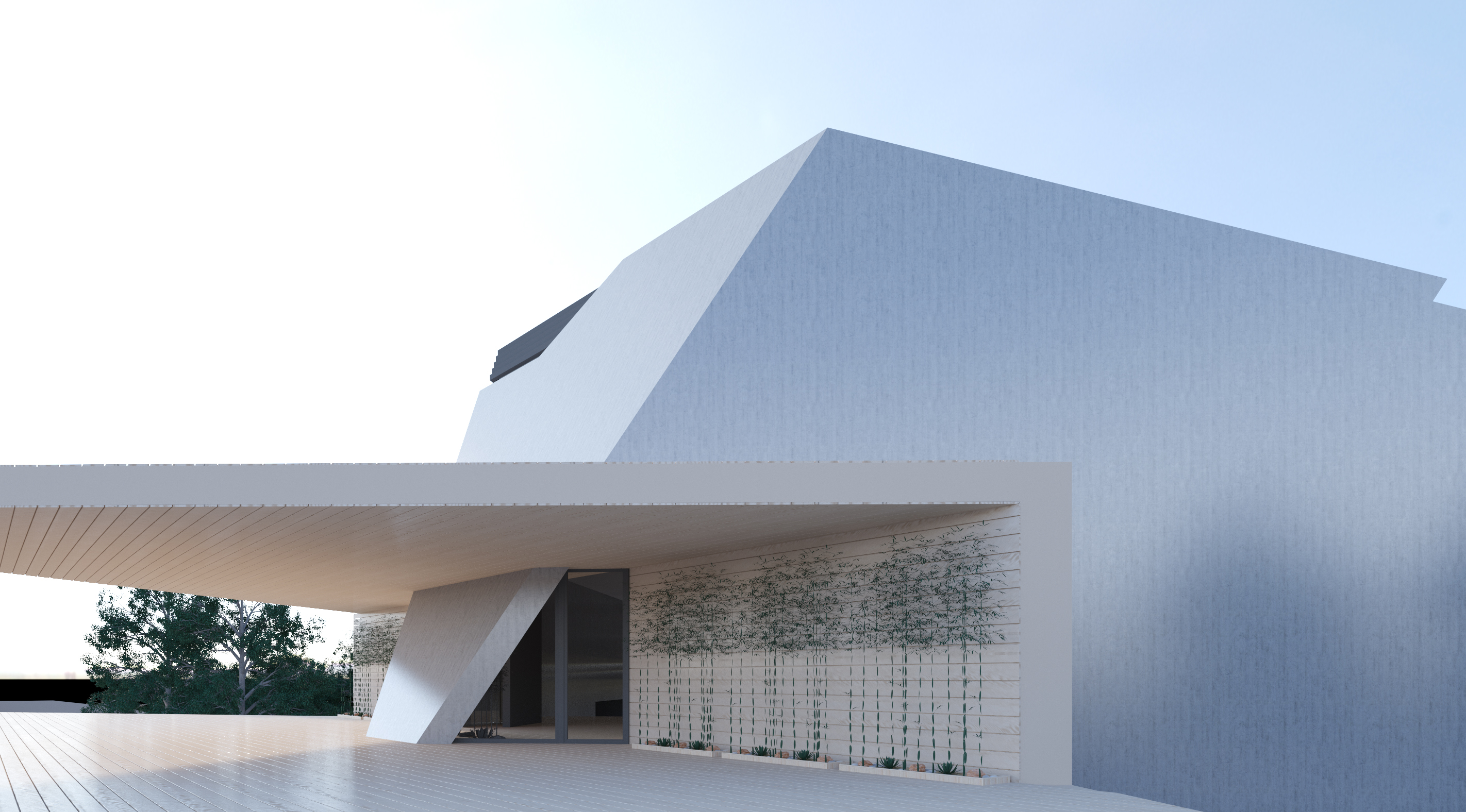 Расположенное на крутом рельефе, здание общей площадью около 1000 квадратных метров представляет собой четырехэтажный объем сложной пространственной формы.