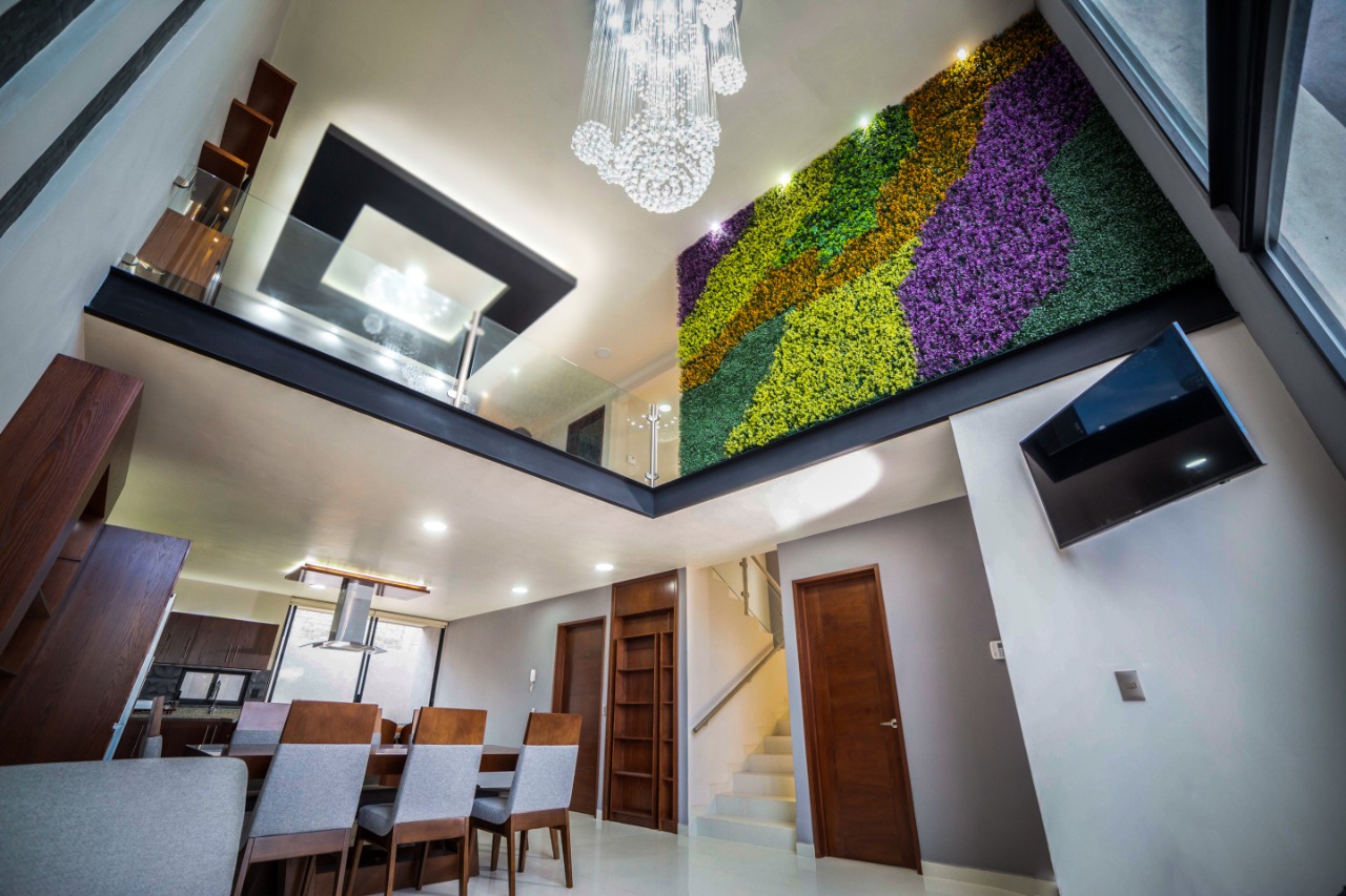 Дом, расположенный в южной части г. Морелия, стал для заказчиков воплощением мечты. Основная ось здания представлена двусветным пространством, из которого просматриваются другие объемы – сад, гостиная, столовая и кухня. Из этого пространства можно попасть во все основные помещения, размещенные на двух этажах (на втором этаже находятся общие пространства, на первом – спальни и семейная гостиная.