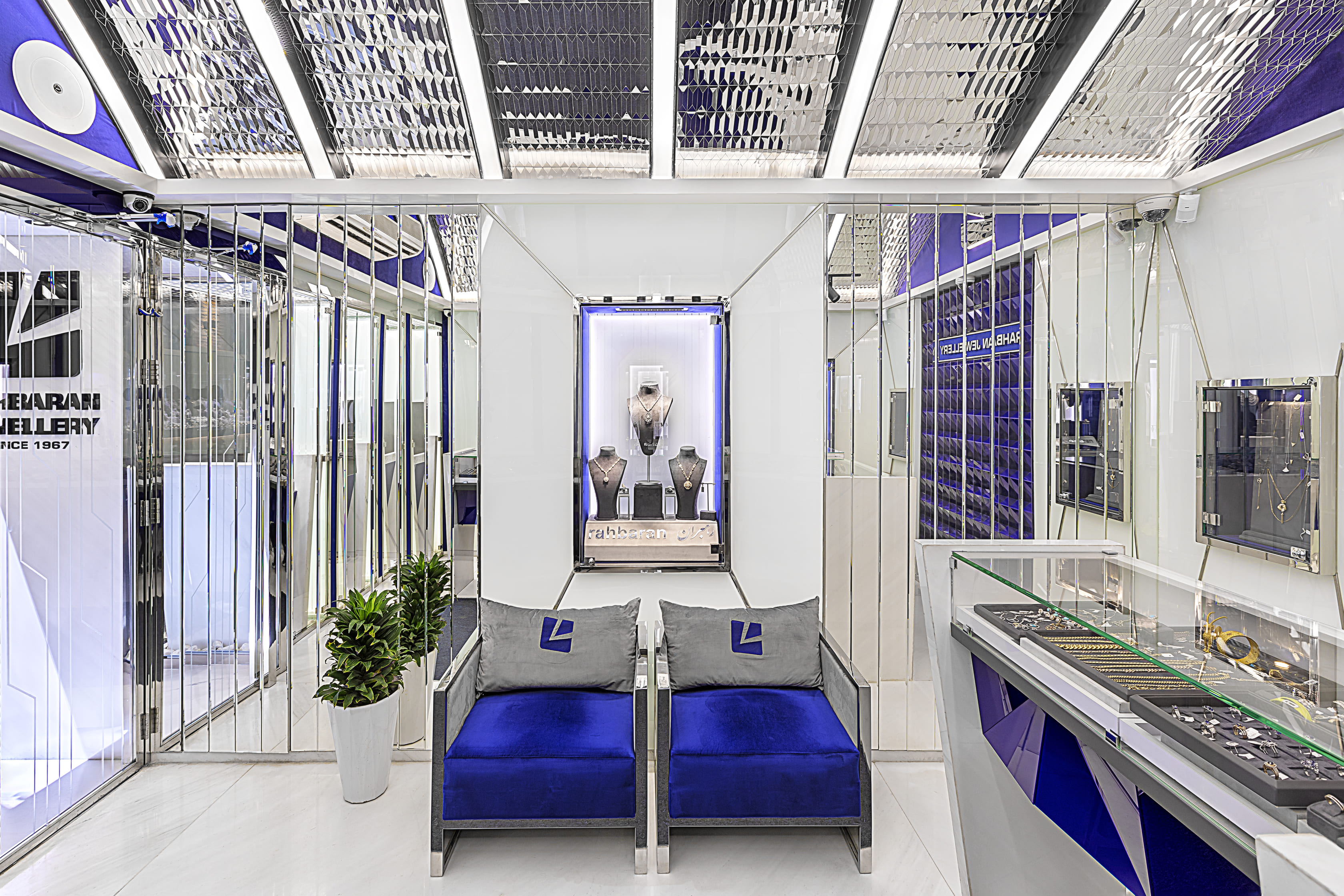 Желая сохранить историческое наследие эры Сефевидов, архитекторы разработали проект магазина-галереи на существующем фундаменте. Ярким оттенком в интерьере стал сапфирно-синий цвет – один из типовых цветов, ассоциирующихся с монархией (ведь ювелирные украшения всегда были неотъемлемой частью королевской традиции). Кроме того, именно этот оттенок характерен для традиционного иранско-исламского зодчества.