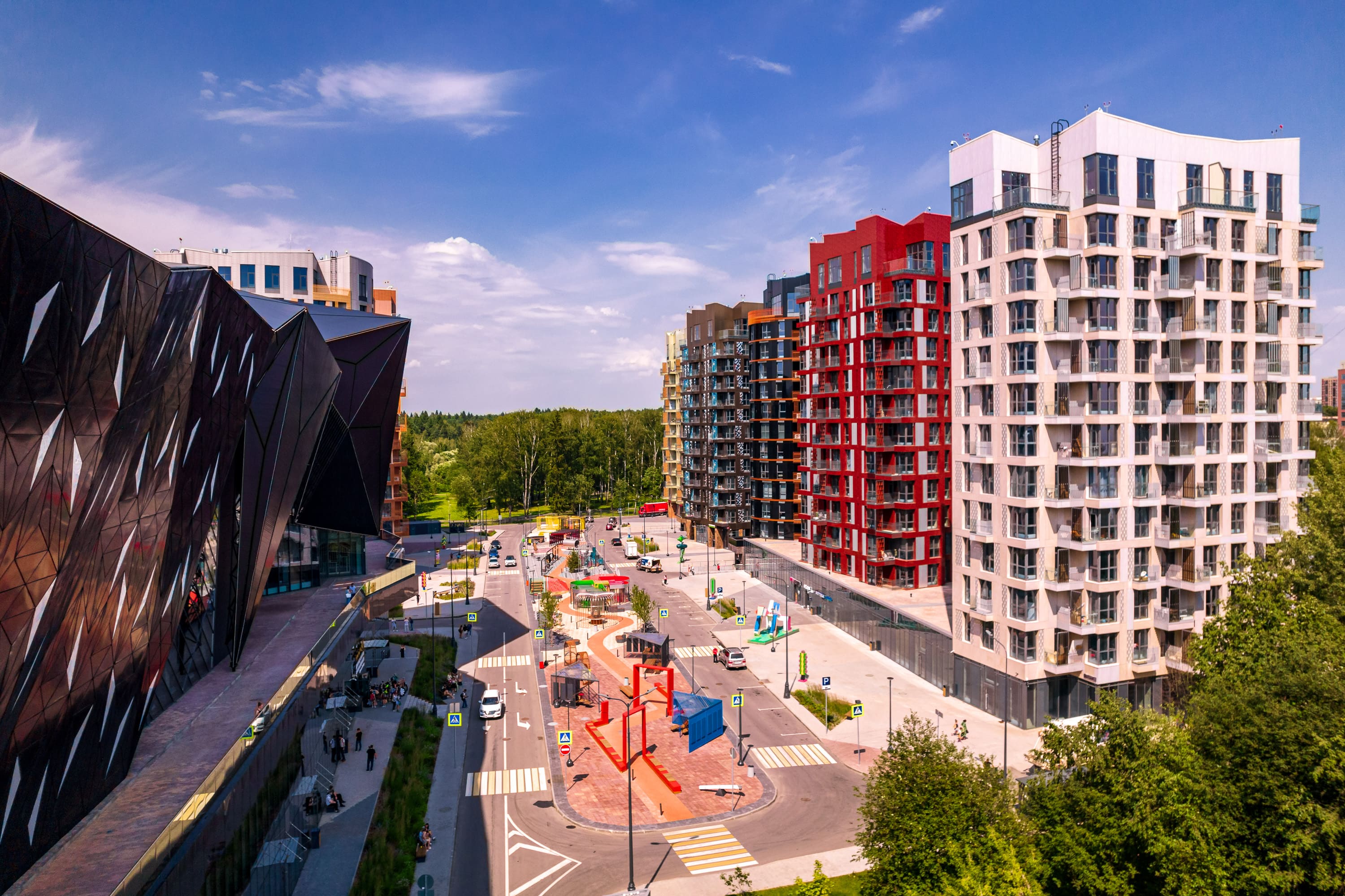 Russian Design District – первый в России авторский жилой кластер с масштабной спортивной, образовательной и культурной инфраструктурой. Все девять домов-аватаров созданы профессиональными архитекторами в коллаборации со звёздами российского дизайна (Валентин Юдашкин, Владимир Пирожков, Игорь Чапурин, Вика Газинская), культуры (Владимир Машков, Валерий Гергиев), спорта (Ирина Винер-Усманова). Один дом – один архитектор со своей уникальной идеей, неповторимым стилем, философией и взглядом на жизнь. Главный архитектурный акцент ансамбля и новая достопримечательность Новой Москвы – МФК «Черный кристалл» с футуристическим куполом в форме кристалла цвета обсидиан.