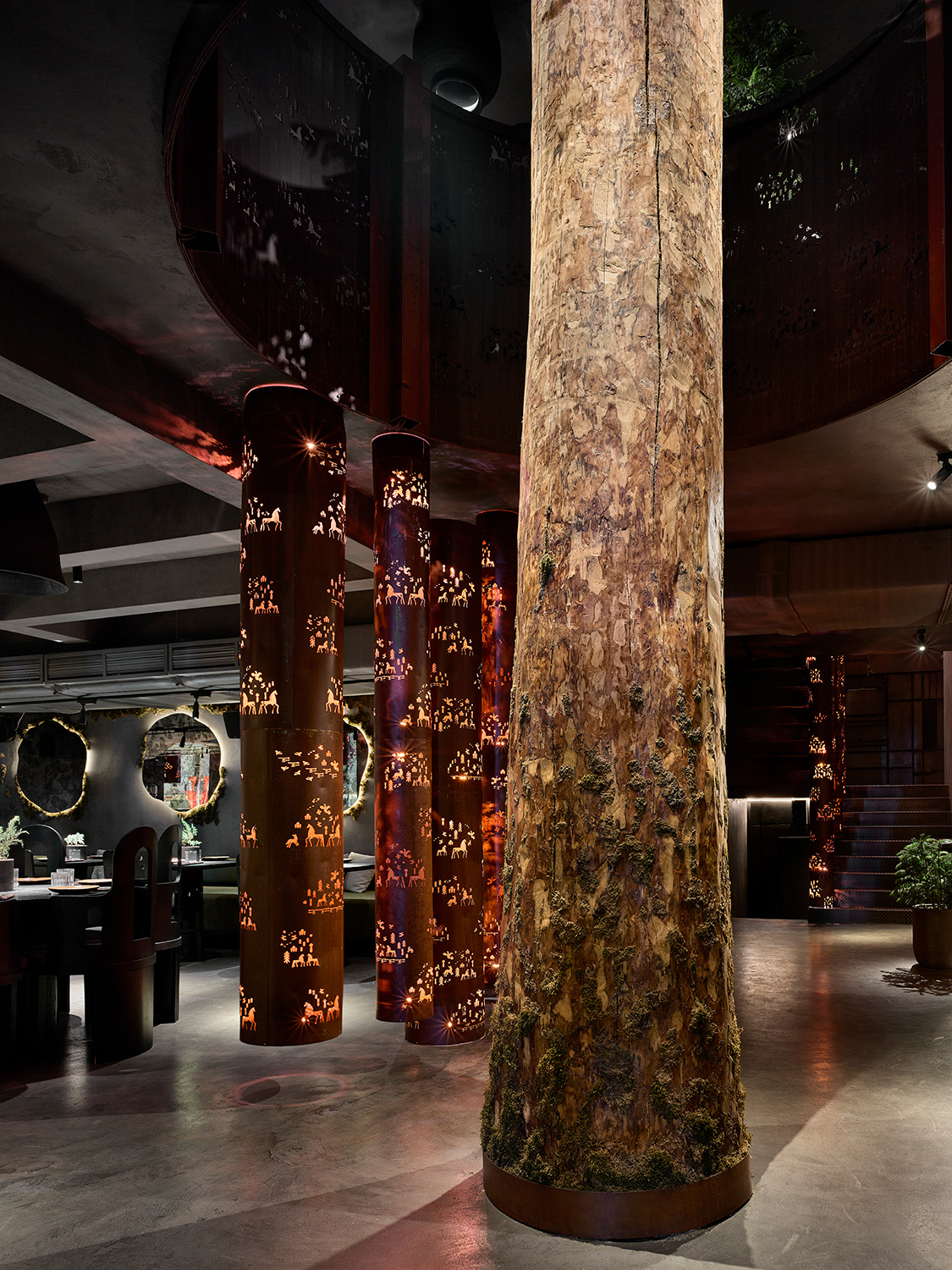 Описание проекта, предоставленное заявителем: Relict – ресторан современной авторской кухни на основе локальных продуктов, где гости могут насладиться специалитетами из разных регионов страны. Нетронутый цивилизацией лес, являющийся основой концепции ресторана, ярко раскрывается в интерьере. Природа реликтового леса сочетается с городской бетонной эстетикой. Декор и предметы мебели отражают авторскую интерпретацию фольклорных мотивов. В интерьере используются принты, паттерны и декоративные решения в стиле мезенской росписи – народного промысла конца XIX в., зародившегося в деревне у реки Мезень. Обращение к мезенской культуре связано с тем, что в республике Коми находится крупнейший реликтовый лес Евразии. Узоры, вдохновленные традиционными ремеслами северных народов, приобретают глубокий смысл и становятся связующим элементом интерьера. Авторская интерпретация реликта символизирует локальную и культурную идентичность и отсылает к локации природного заповедника.