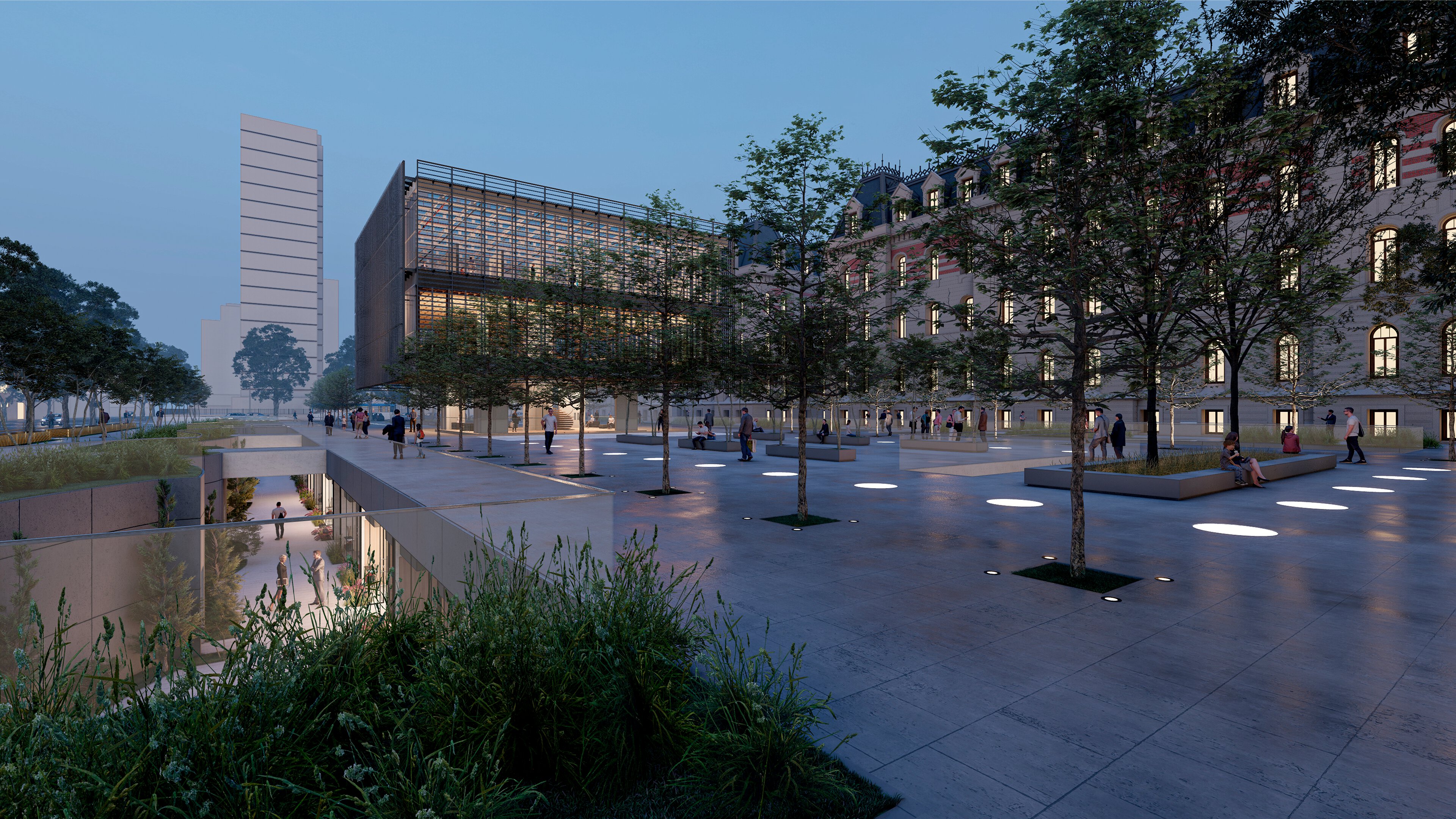 Основной задачей автора было создание нового общественного пространства с площадью и променадом в этом районе, причем часть помещений предлагается разместить на подземных уровнях. Здание должно стать новой архитектурной доминантой, местом встречи для соседей, студентов и друзей, а благодаря озеленению прилегающая к нему территория станет «зелеными легкими» района.