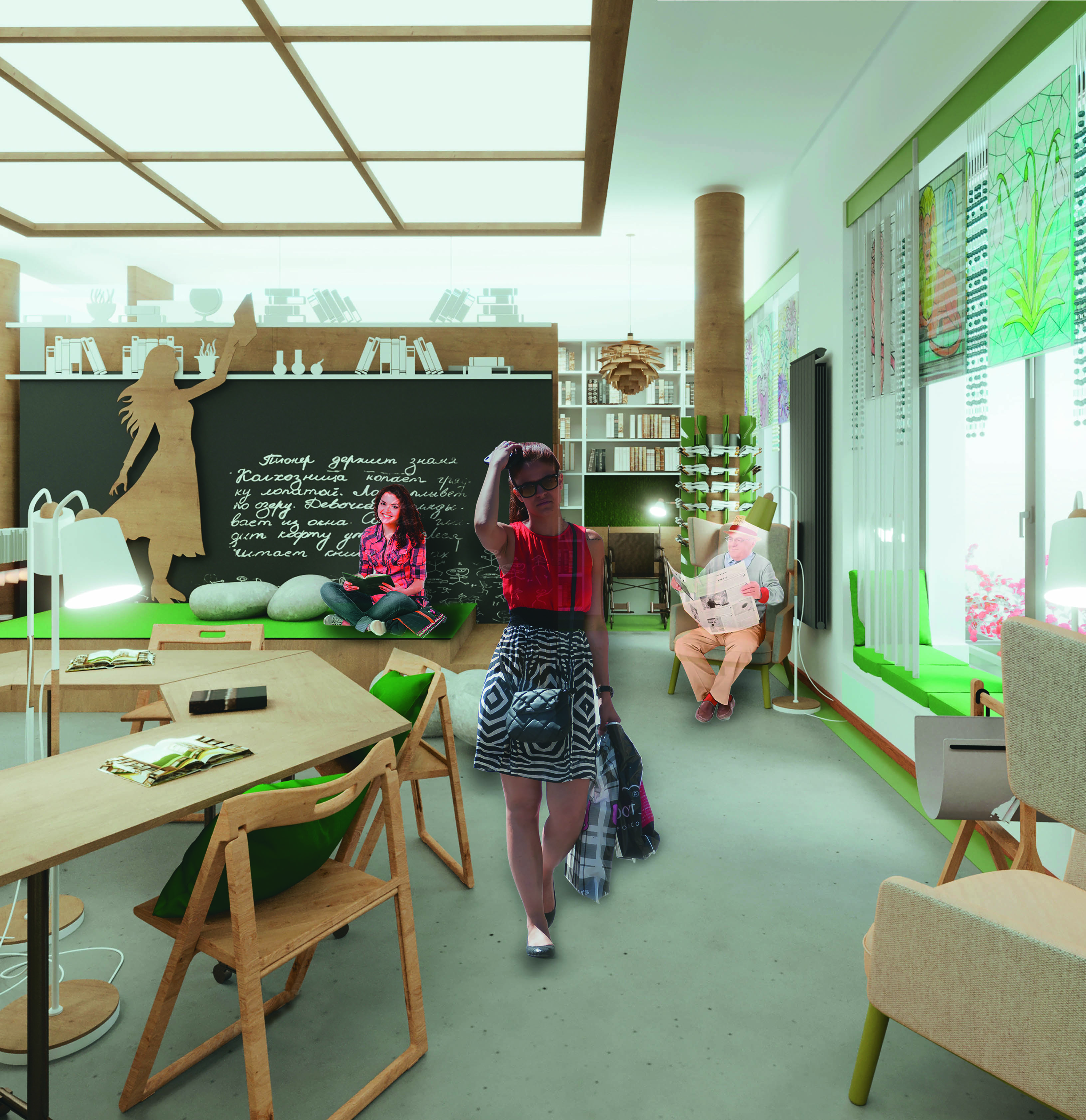Описание проекта, предоставленное заявителем: В сельской местности библиотека выполняет большинство функций социокультурного пространства и может стать местом для самоактуализации через сохранение и представление в новом качестве процесса чтения. В рамках исследования была проведена теоретическая работа, на основе которой был сформирован алгоритм организации мест для чтения. Алгоритм состоит из четырёх блоков, каждый из которых ориентирован на определённый тип целевой аудитории библиотеки и содержит набор пространственных характеристик. Применение этого алгоритма показано на примере проекта Приводинской библиотеки. Например, входная зона, ресепшн, трансформируемый зал и интерактивная стена ориентированы на нечитающую аудиторию. Трансформируемый зал и часть транзитных пространств библиотеки ориентированы на аудиторию, выбирающую литературу по интересам (в большей степени художественную). Места в основном читальном зале и частично в фонде организованы для посетителей, выбирающих литературу для саморазвития и/или профессиональной деятельности.