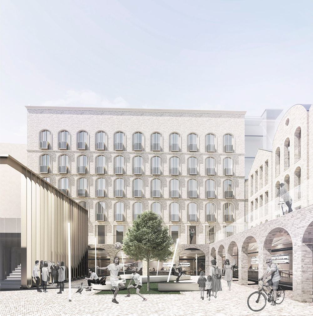 О проекте: Проект представляет собой реконструкцию жилого дома и возведение комплекса зданий разной этажности, объединенных благоустроенной общественной площадью с крытой галереей и вторым уровнем-террасой. Под площадью, в стилобатной части на месте существующей парковки, размещается полуподземный паркинг. По периметру площади, а также на втором уровне предполагается размещение арендуемых помещений общественного назначения. Доступ на площадь осуществляется непосредственно с улицы Рубинштейна через лестницу-амфитеатр.