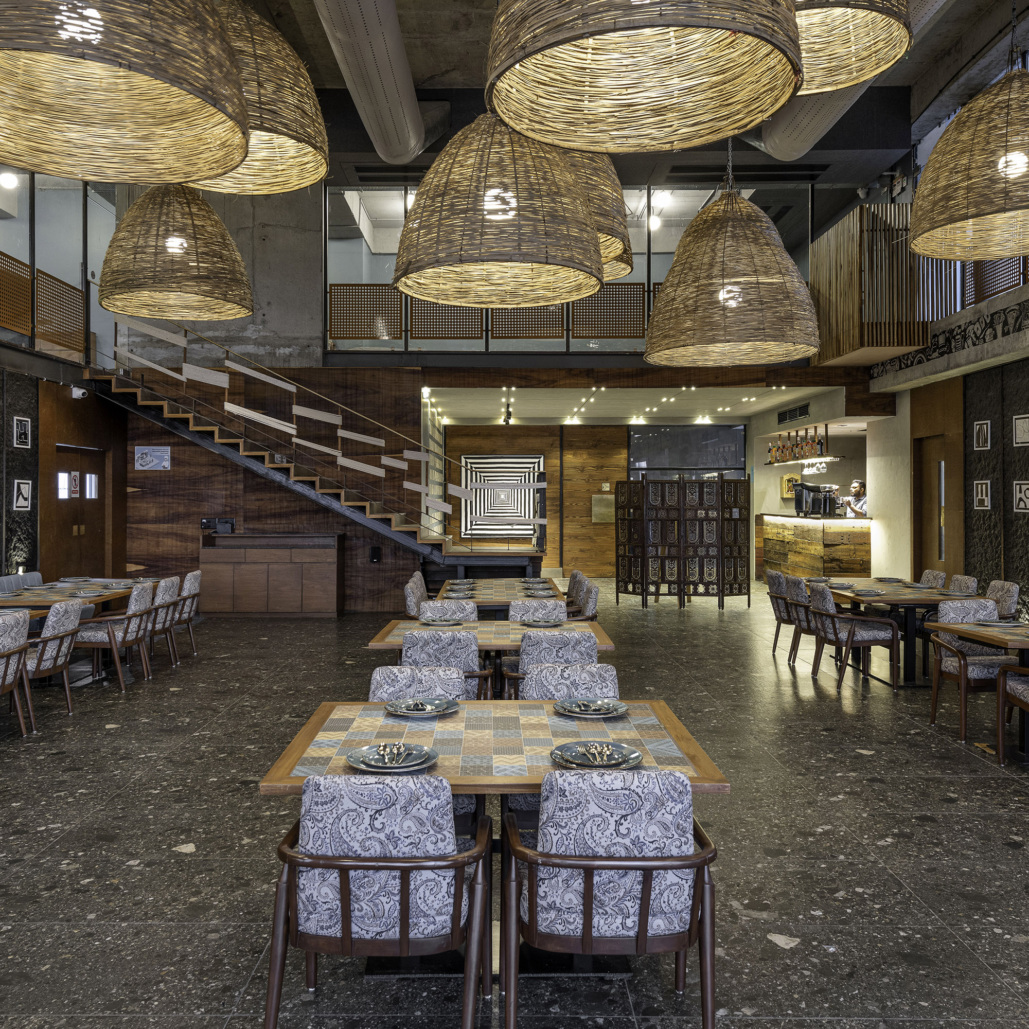 Первостепенными задачами проекта было создание экологически безопасного сооружения и поддержка местного населения за счет использования материалов местного производства. При оформлении применяли бамбук, восстановленную древесину, джутовую веревку и другие «зеленые» материалы. Темные мозаичные полы, выложенные плиткой столы, предметы ручной работы - все это изготовлено местными мастерами. Изюминкой интерьера стали плетеные бамбуковые абажуры, также изготовленные местными жителями.