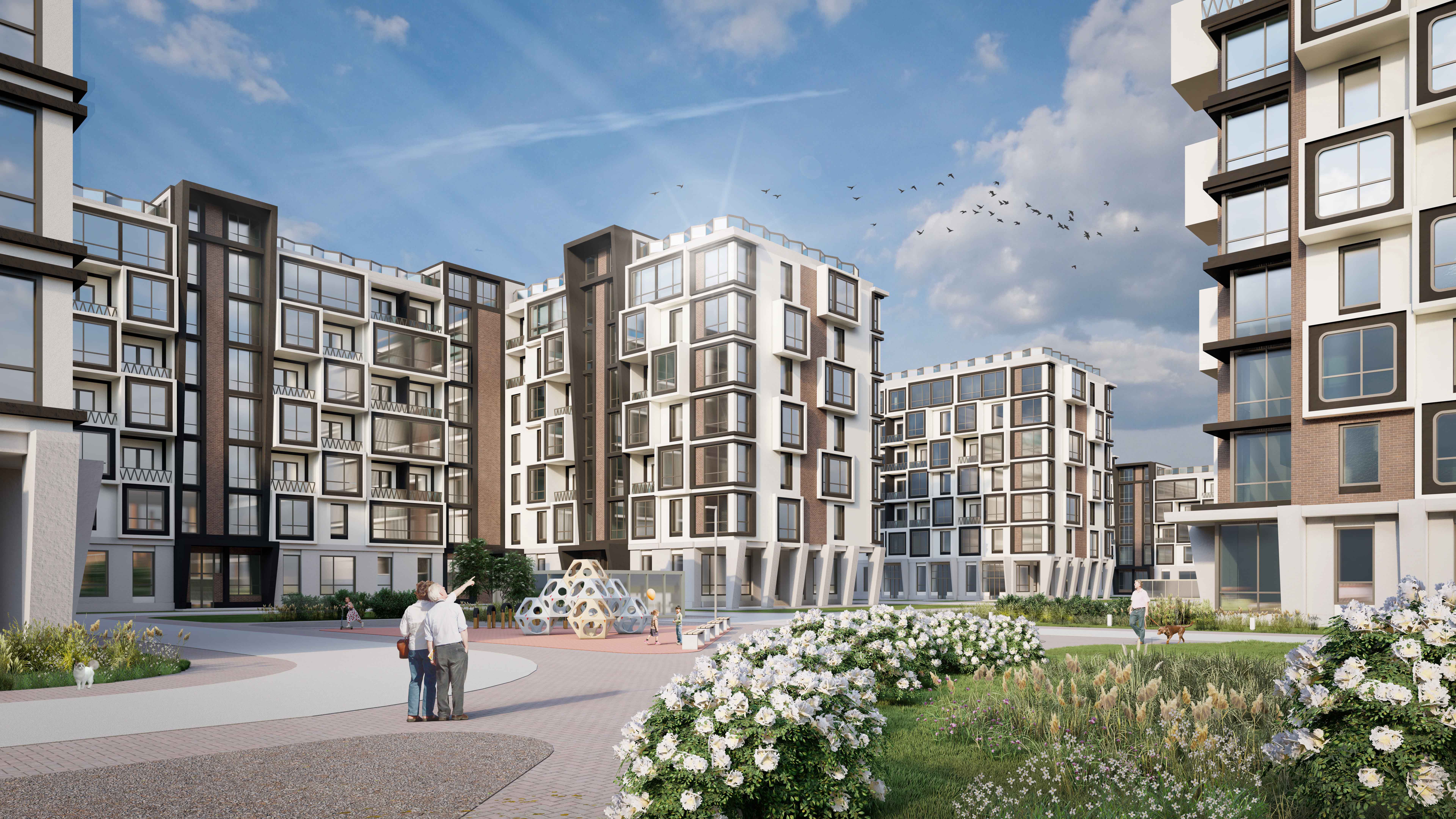 О проекте: Жилой комплекс расположен в проектируемом квартале на территории бывшего Охтинского порохового завода Красногвардейского района Санкт-Петербурга. При разработке градостроительной концепции квартала особое внимание было уделено организации структурных зеленых связей для пешеходов, минимизации автомобильных потоков, сохранению и поддержанию качества существующего зеленого каркаса, соблюдению баланса жилых, общественных строений и общественно-рекреационных пространств, сохранению идентичности и контекста территории. Проектируемый жилой комплекс представляет собой жилую группу комфорт-класса, задающую тон и ансамбль будущей застройки вдоль береговой линии реки Охта. Симметричная композиция жилой группы завершена домами башенного типа, представляющими собой доминанты комплекса. Архитектурно-пластическое и колористическое решения фасадов являются отсылками к брутализму и архитектуре советского индустриального наследия.