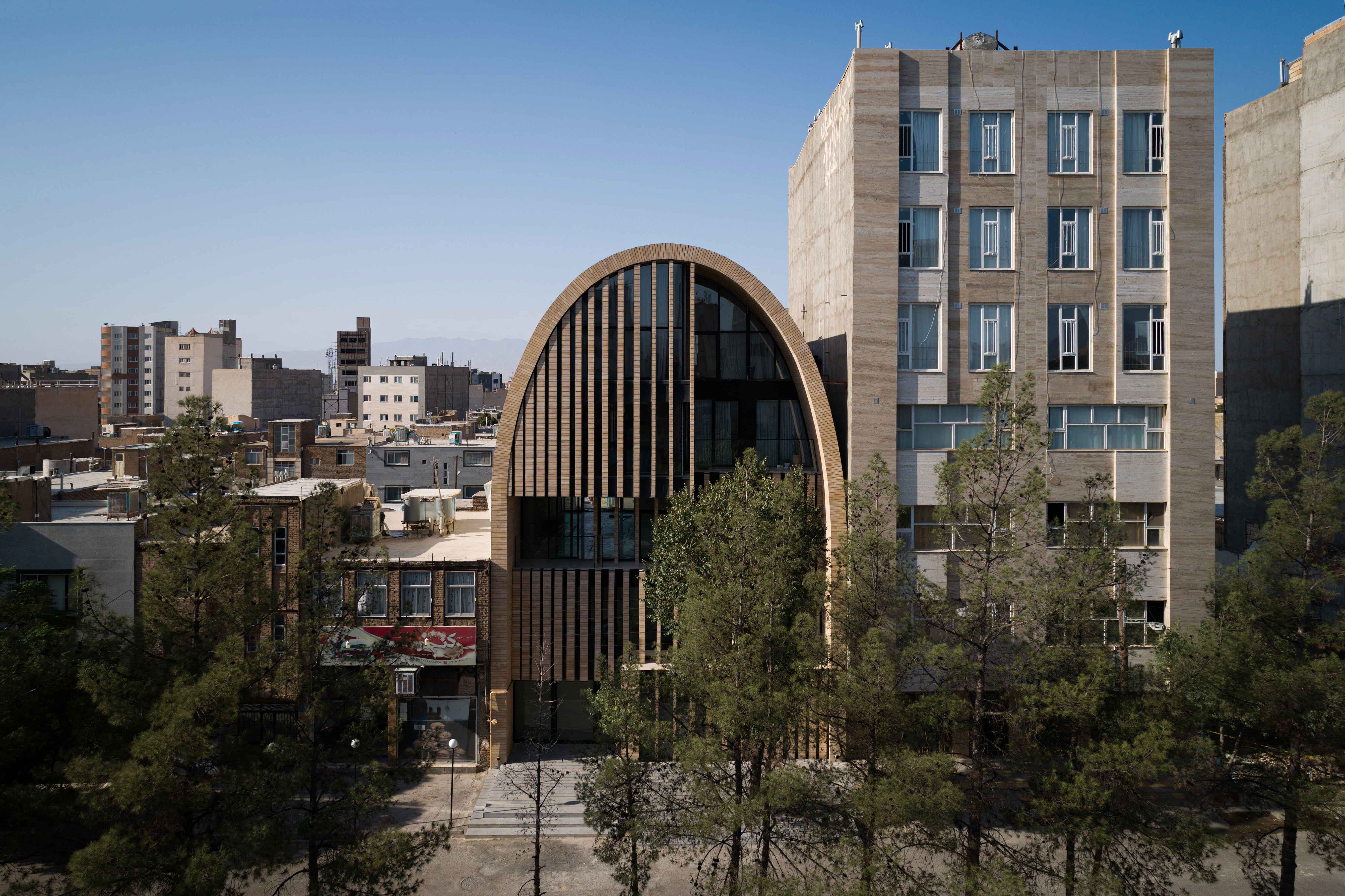 О проекте: Перед автором стояла задача по разработке проекта 4-этажного дома для семьи из 5 человек на участке площадью 300 м2. Каждый из этажей планировалось определить под определенную функцию, и эту задачу удалось решить. Дом в форме вытянутой по вертикали арки предлагает своим обитателям удобство и комфорт.