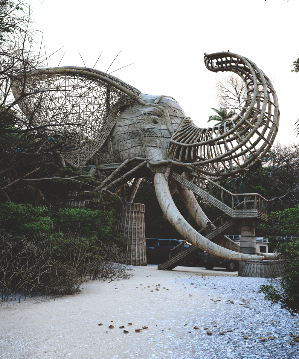 О проекте: Автор проекта предлагает установить монументальную фигуру слона и разместить внутри нее смотровую площадку для наблюдения за ходом сафари. Функциональная экспрессивность конструкции станет символом сафари-парка. При взгляде на этот сложный и инновационный проект вспоминаешь «уток» Роберта Вентури и Дениз Скотт-Браун (они предлагали передавать функции скульптурных сооружений посредством объемов). Технически тело слона предлагается выполнять из деревянной решетчатой конструкции, благодаря чему здание, с одной стороны, гармонично вписывается в окружающий ландшафт, а с другой – выглядит как компьютерная модель.