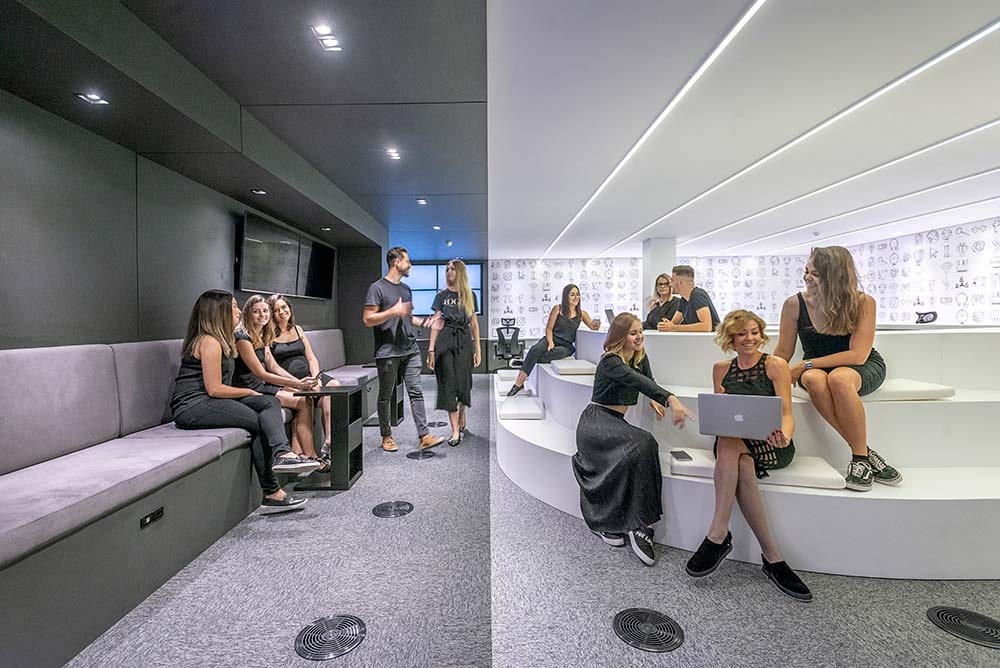 О проекте: Главной задачей проекта стало создание концептуального и в то же время практичного, высокотехнологичного и функционального пространства для исследовательской лаборатории компании Senior Sistemas. В проекте физически представлен контраст света и тени, и обе сущности здесь равноценны, напоминая, что нормально думать не так, как все, иметь собственное мнение и предлагать нестандартные решения. Для установления связи между этими сущностями в центре помещения было выделено нейтральное пространство для встреч, общения и отдыха.