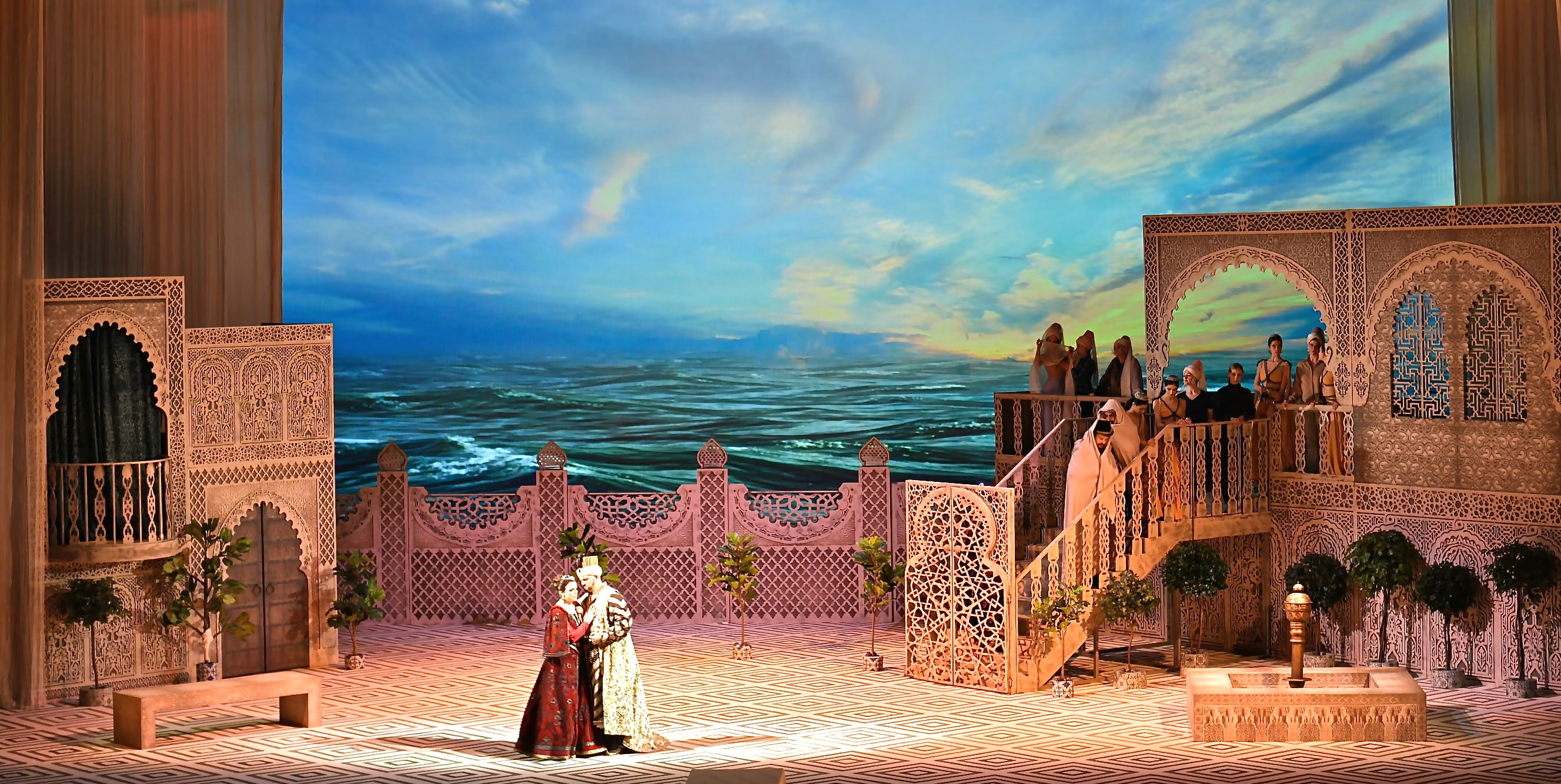 О проекте: Декорации к спектаклю "Похищение из Сераля". Для создания проекта (эскизов) были использованы традиционные мотивы ориентальной архитектуры. При реализации проекта - ввиду крайне сжатых сроков - наряду с классическими были использованы современные технологические методы (лазерная резка, печать на ткани и тд)