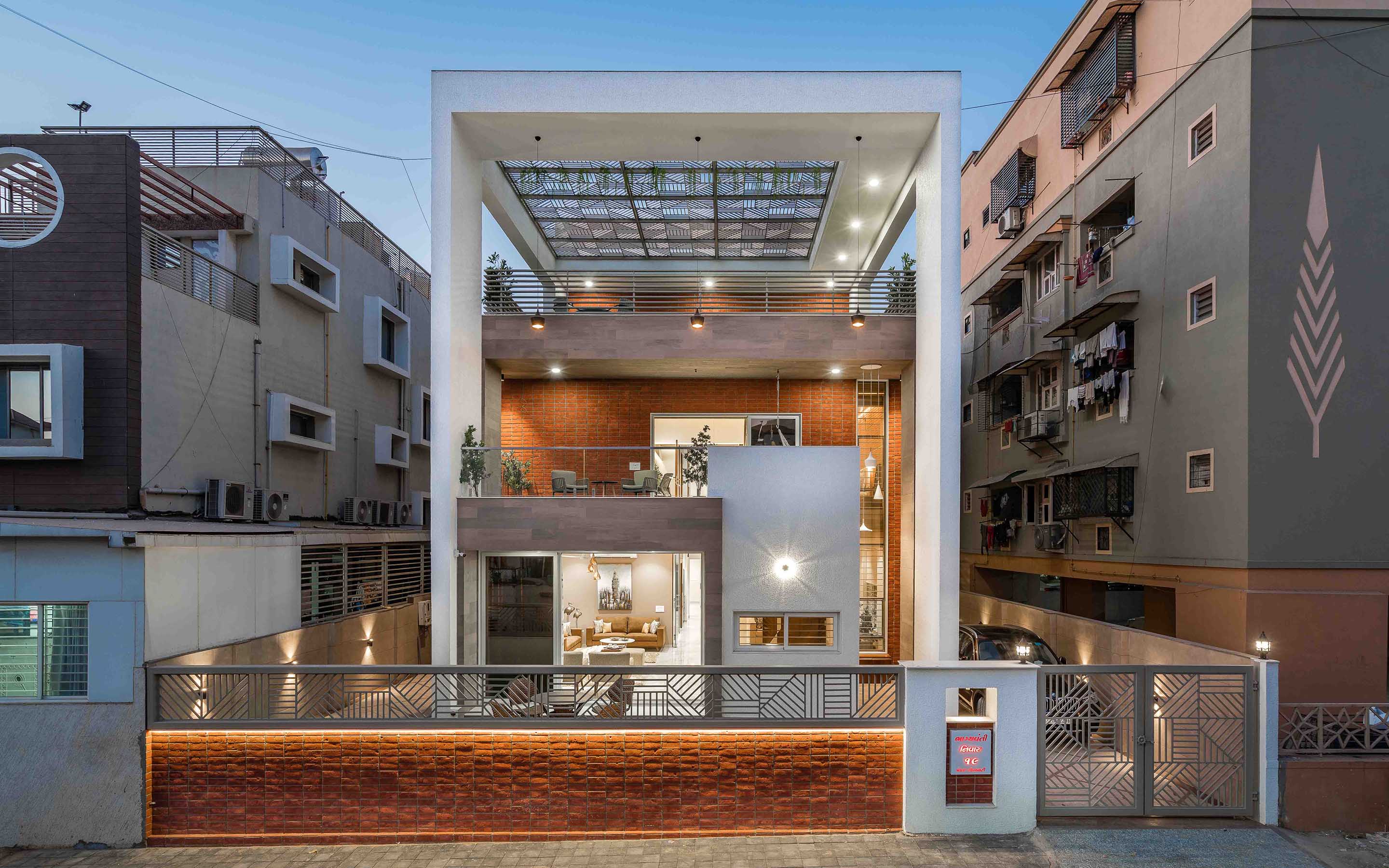 О проекте: Множество массивных решеток на разных уровнях, просторные полуоткрытые зеленые террасы на каждом этаже, игра света, который проникает через узорчатую стальную решетку над верхним этажом.