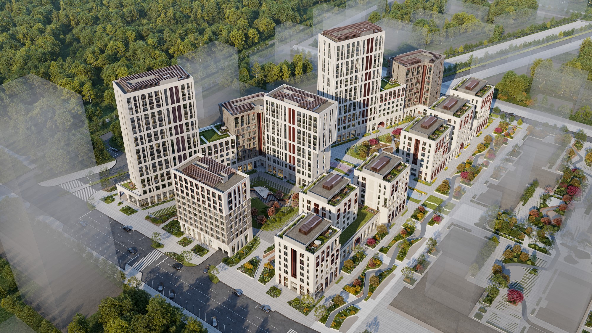 Главной особенностью жилого квартала станет соседство разных форматов жилья — от таунхаусов до небоскребов. Здесь появятся несколько 28-этажных башен, 9-этажные жилые секции с открытыми верандами с видом на набережную и реку, таунхаусы, а также продуманная сеть благоустроенных общественных и приватных пространств. На первых этажах зданий размещены помещения различного функционального назначения, а также дополнительные пространства для коммуникации жителей в местах общего пользования.