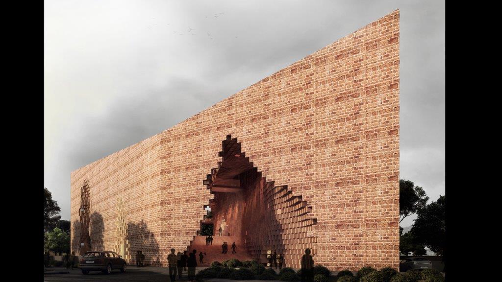 Опроекте: Музей образован двумя клинообразными объемами и имеет два входа для посетителей. Пройдя через любой из них, горожане и туристы попадут на променад, который станет общественным пространством для проведения мероприятий. Кроме того, контуры променада обрамляют традиционный храм на заднем плане. Предлагаемый к использованию материал – песчаник местного производства (карьер расположен буквально в нескольких километрах от стройплощадки).
